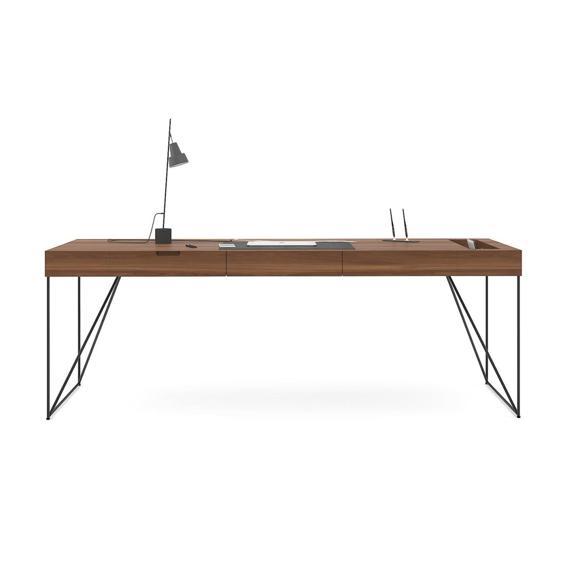 Aesthetic, minimalistic yet extremely functional AIR Executive design provides an outstanding feeling of comfort and openness. The essential parts of AIR Executive is its solid natural wood veneer table top and steel legs that ensure not only the elegant feel of the table, but also its stability. The integrated drawers are lined with high quality natural leather. You can choose accompanying cabinets with the same distinctive leg detail as well as minimalistic wardrobes and other storage solutions.
