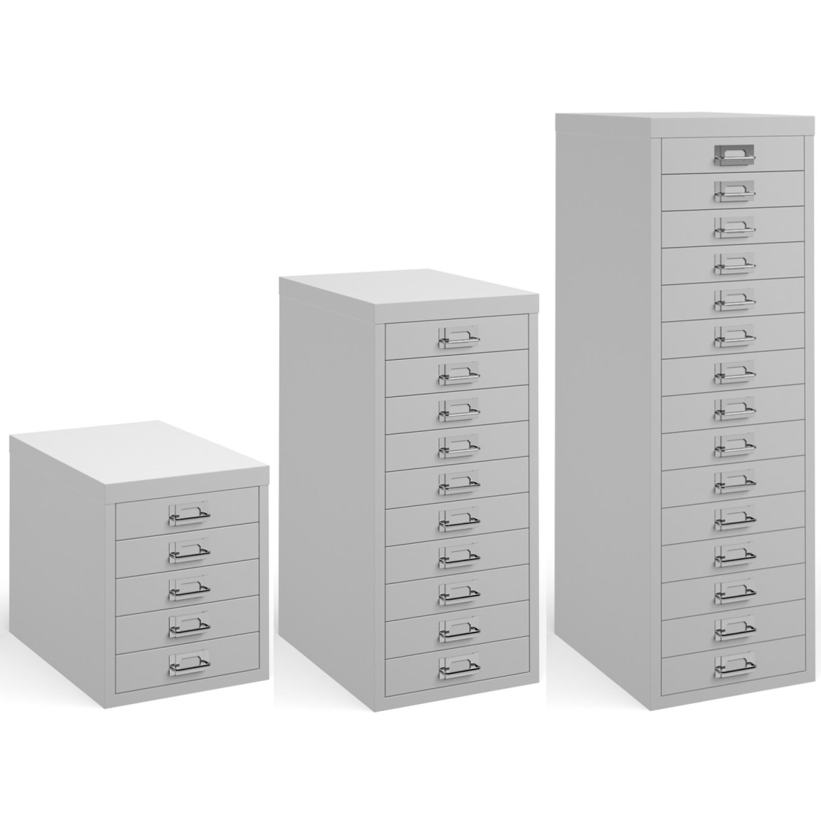 The Multi Drawers offer an excellent storage capacity and are available in 3 drawer options (5 drawer, 10 drawer and 15 drawer). Ideal for the home office environment or an office short on space, the Bisley Multi Drawers are available in a choice of 2 colours (Grey or White), offer individual drawer label holders, chrome handles and are extremely lightweight making them ideal for use both placed on the floor or on the top of a work surface.