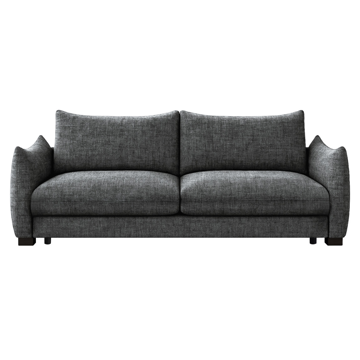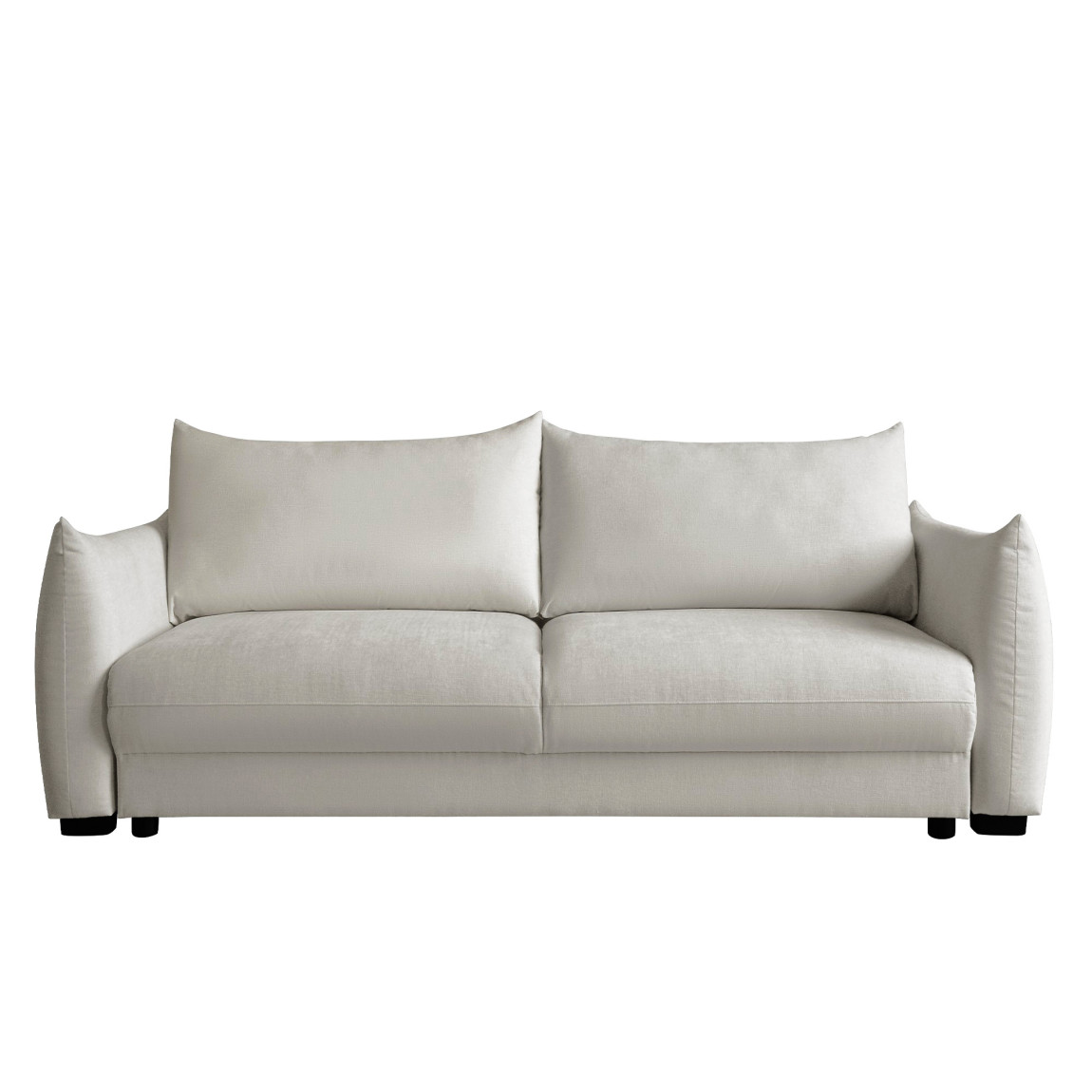 Stylish and space-saving 3-seater sofa bed in soft fabric. This elegant sofa bed combines comfort and practicality, making it an ideal choice for smaller rooms or compact apartments. Upholstered in a soft-touch fabric, it offers a cosy seating experience and easily transforms into a guest bed for two people using the manual adjustment function. The foldout design reveals a generous lying area of approx. 188 × 150 cm, perfect for occasional overnight stays. With a seat height of 44 cm and five black plastic legs, it provides a stable base with a maximum load capacity of 375 kg. Two loose cushions add extra comfort and flexibility to your seating arrangement. A smart solution for modern living, this sofa bed blends style, comfort and functionality in one compact piece. |