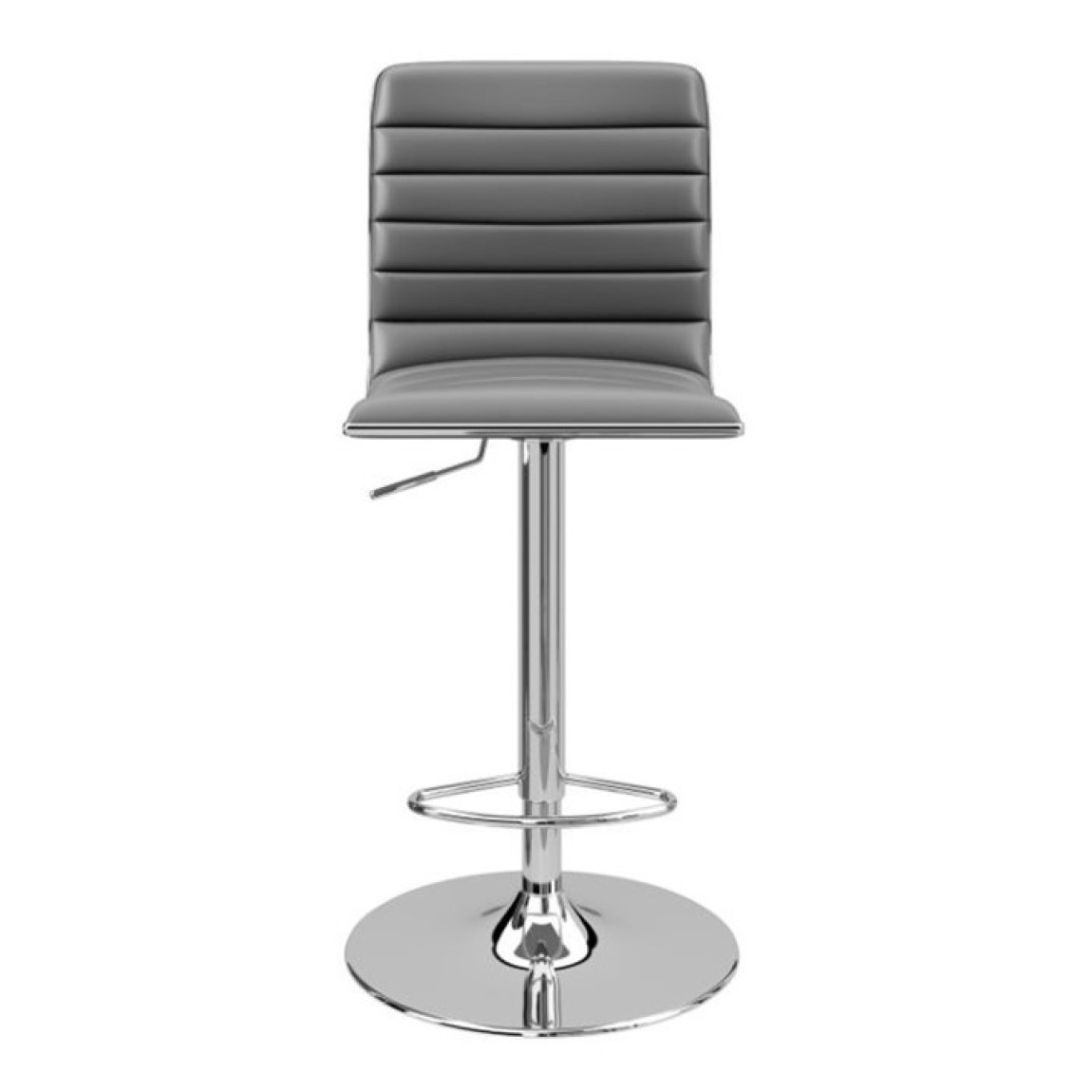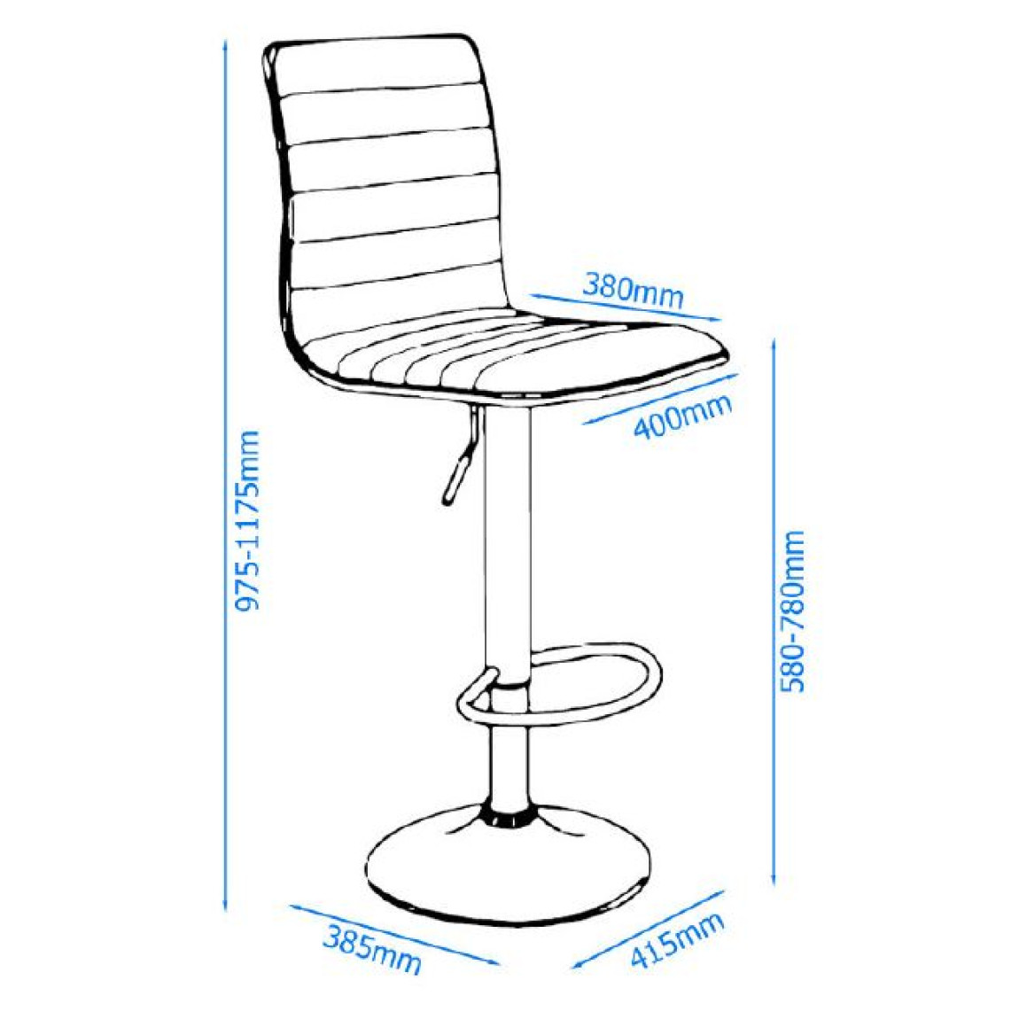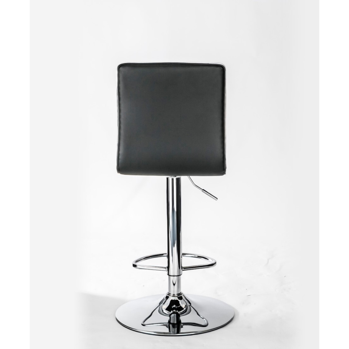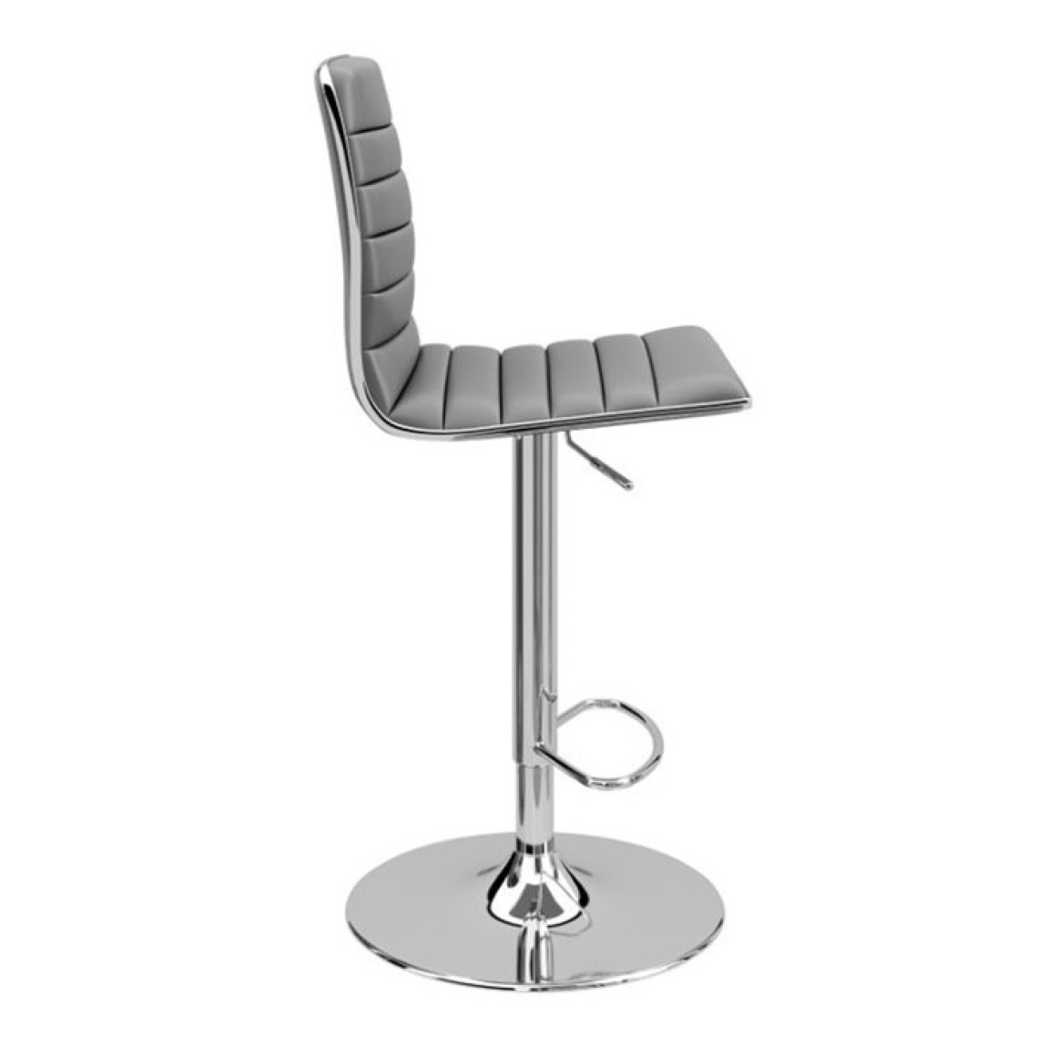 The Colby features a ribbed padded high back, outlined in striking chrome, chrome base and footrest, making the Colby Bar stool stylish in any room. The Colby is made in black faux leather, it also has seat height adjustment and 360 degree turning.