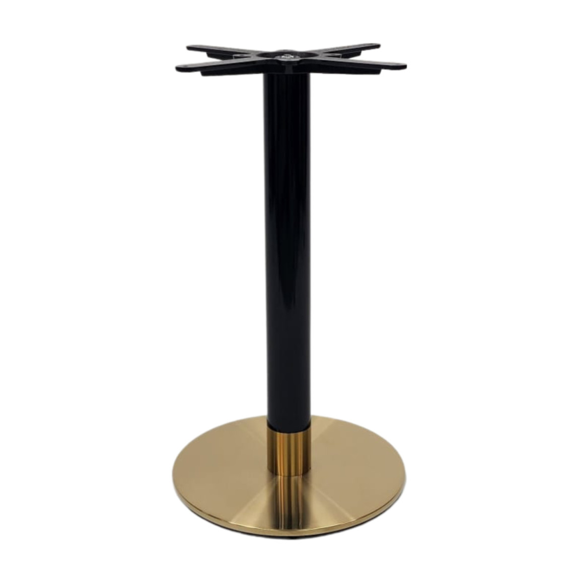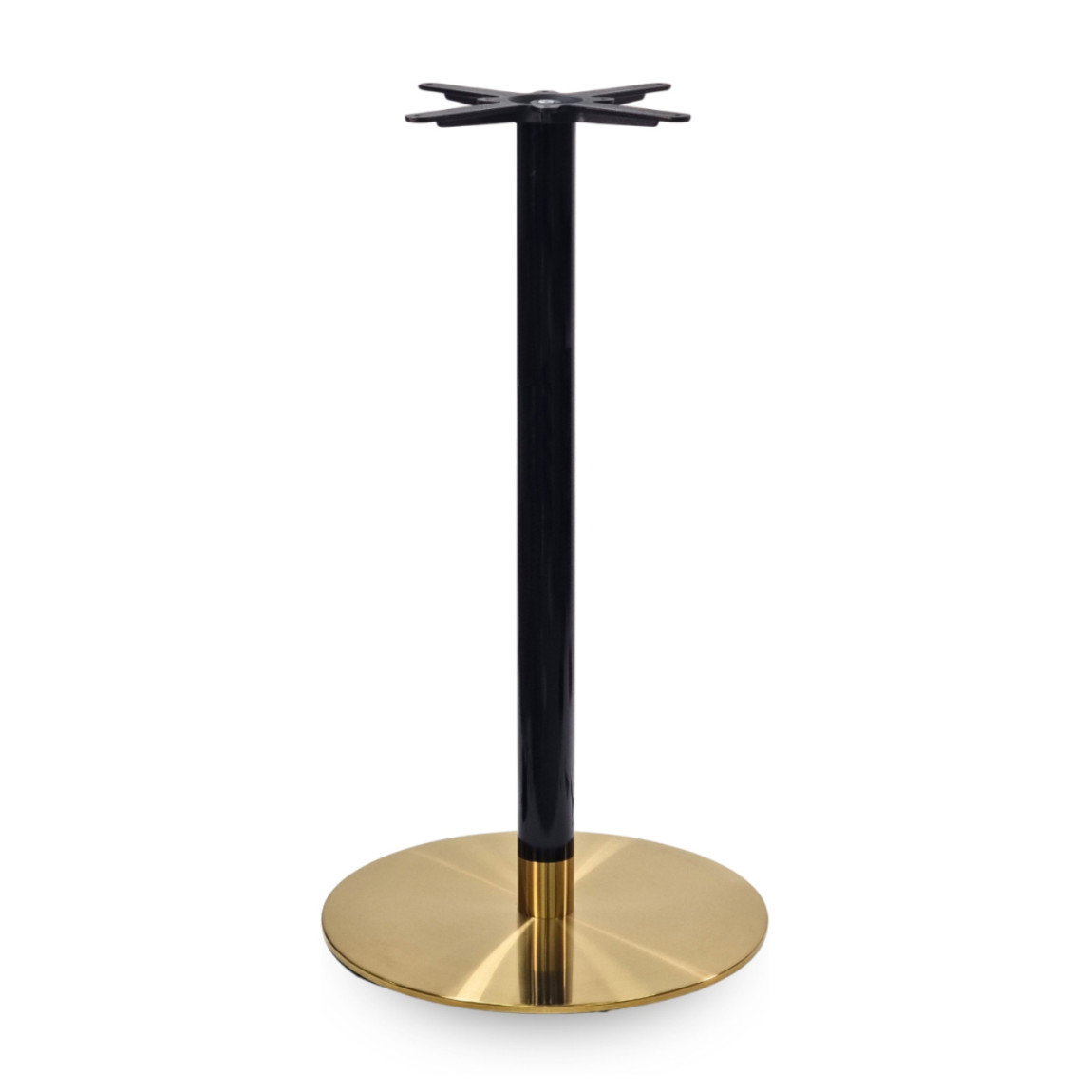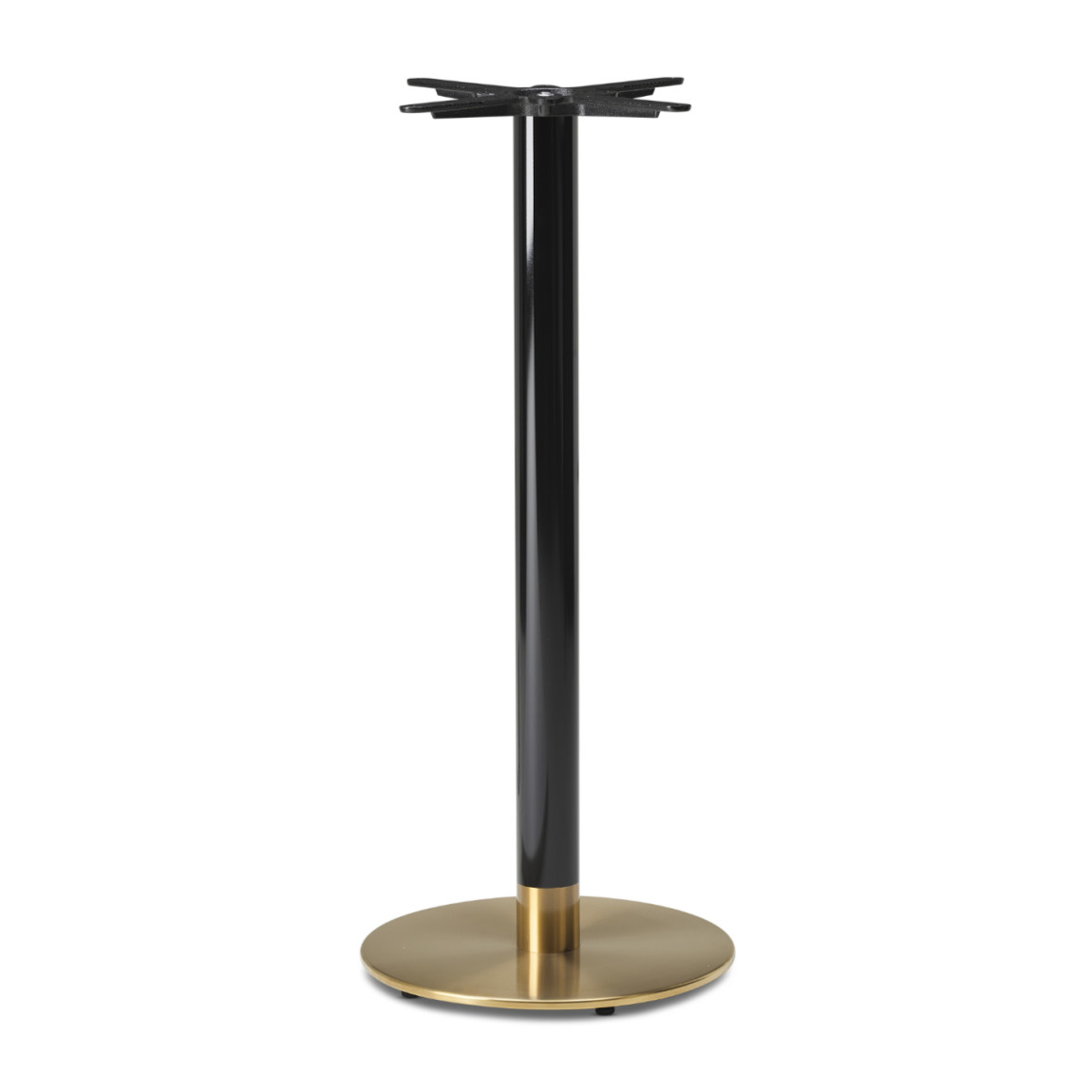 Elevate your space with our stunning Glossy Cava Black and Gold Metal Table Base, a perfect blend of modern elegance and timeless sophistication. Crafted around high-quality cast iron core, this table base features a sleek black finish to the upper column that beautifully contrasts with the luxurious gold accents of the lower portion of the column and base, making it a striking centrepiece for any dining or drinking area. Available as Coffee, Dining and Poseur Height