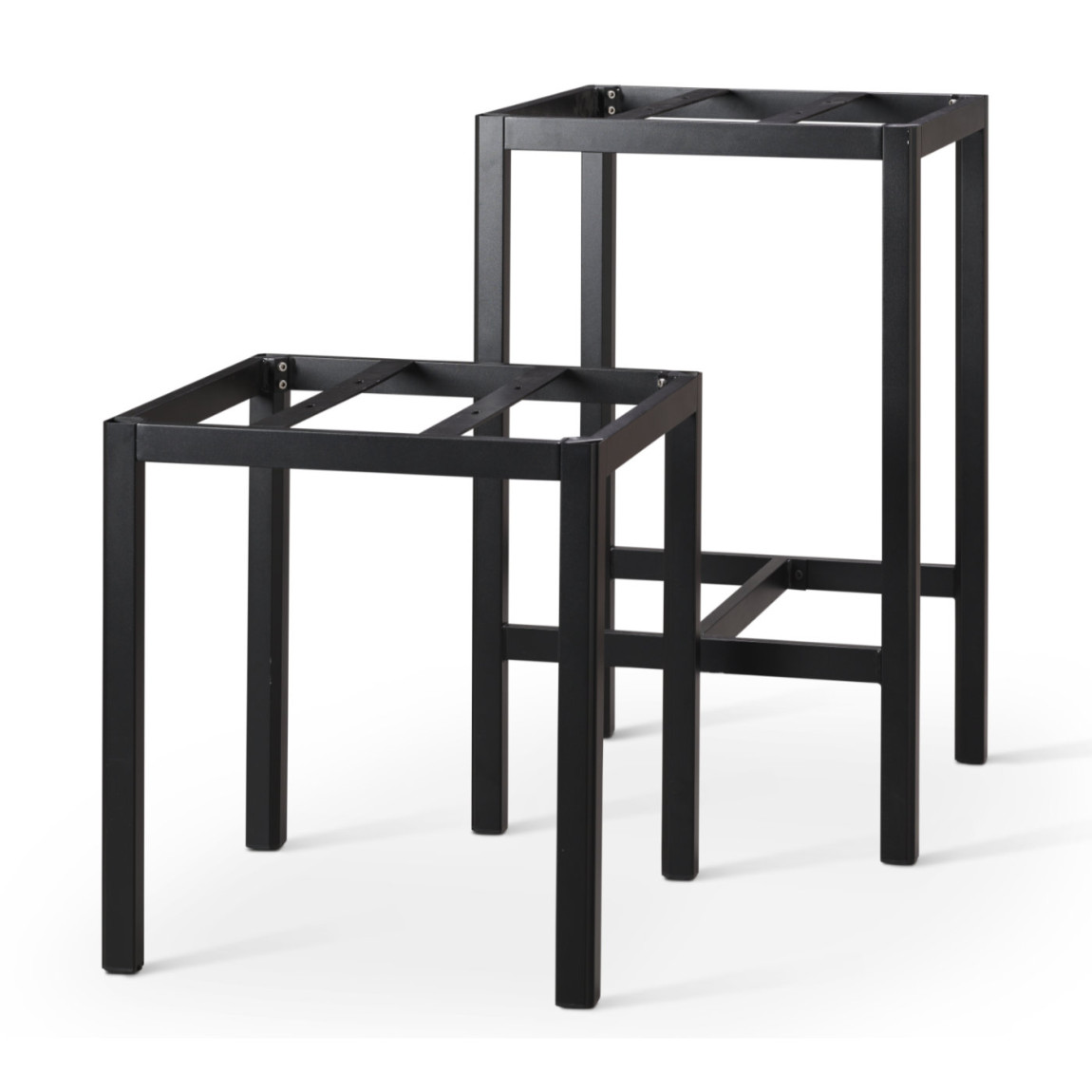 The Manhattan Black Powder Coated Aluminium Table frame. Lightweight yet durable, the minimalistic design of the Manhattan Table Frame means it perfectly compliments our Square 12mm thick Ultratop Compact laminate range, but will also pair well with any square or rectangle Tuff Top Original or Premium Table Top.