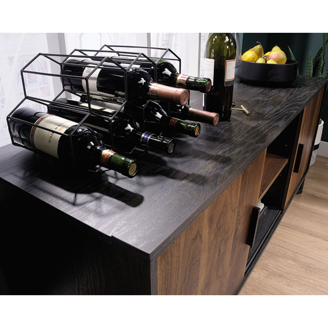 TV stand in Brew Oak finish with Grand Walnut accents