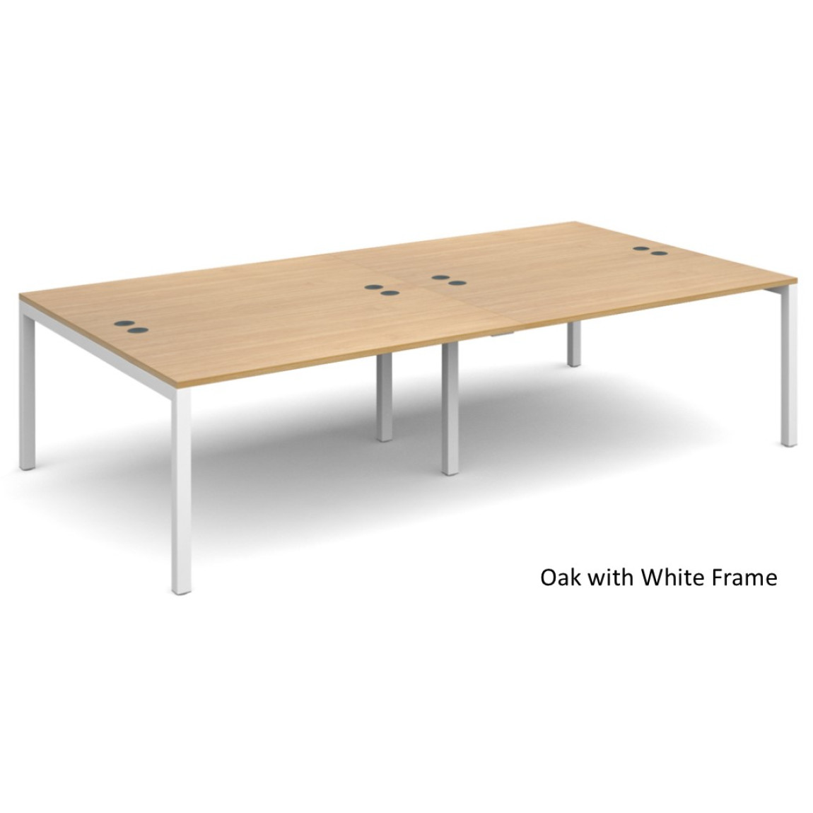 The Connex Bench Desking range is our cost efficient desk range suitable for use in any office area. The desks are available in a choice of 5 finishes (Beech, Grey Oak, Oak, Walnut or White) as well as 2 frame colours (White or Silver). The Connex Double Back to Back desks are is available in the choice of 3 width options, offers 25mm thick tops, both horizontal and vertical cable management and features square steel framework for enhanced strength and stability.