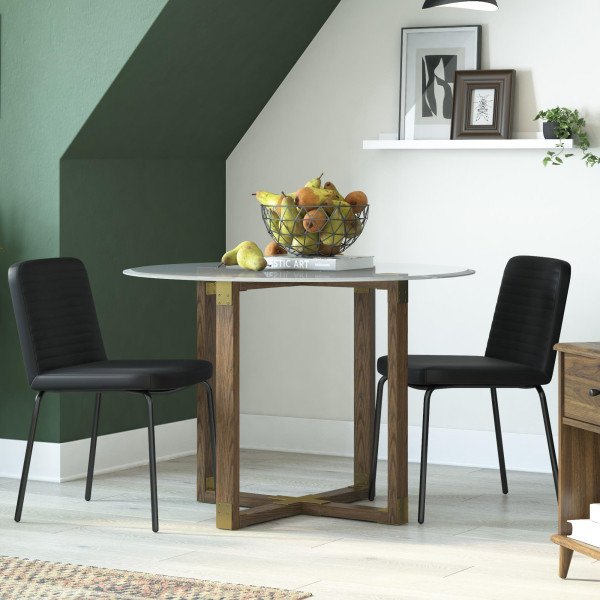 Designed with a simple modern silhouette, the Corey features tight horizontal mid-century tufting details on the backrest. The Corey is built with a strong wood construction with foam padded seating and steel tube legs to provide long-lasting comfort, support, and durability.