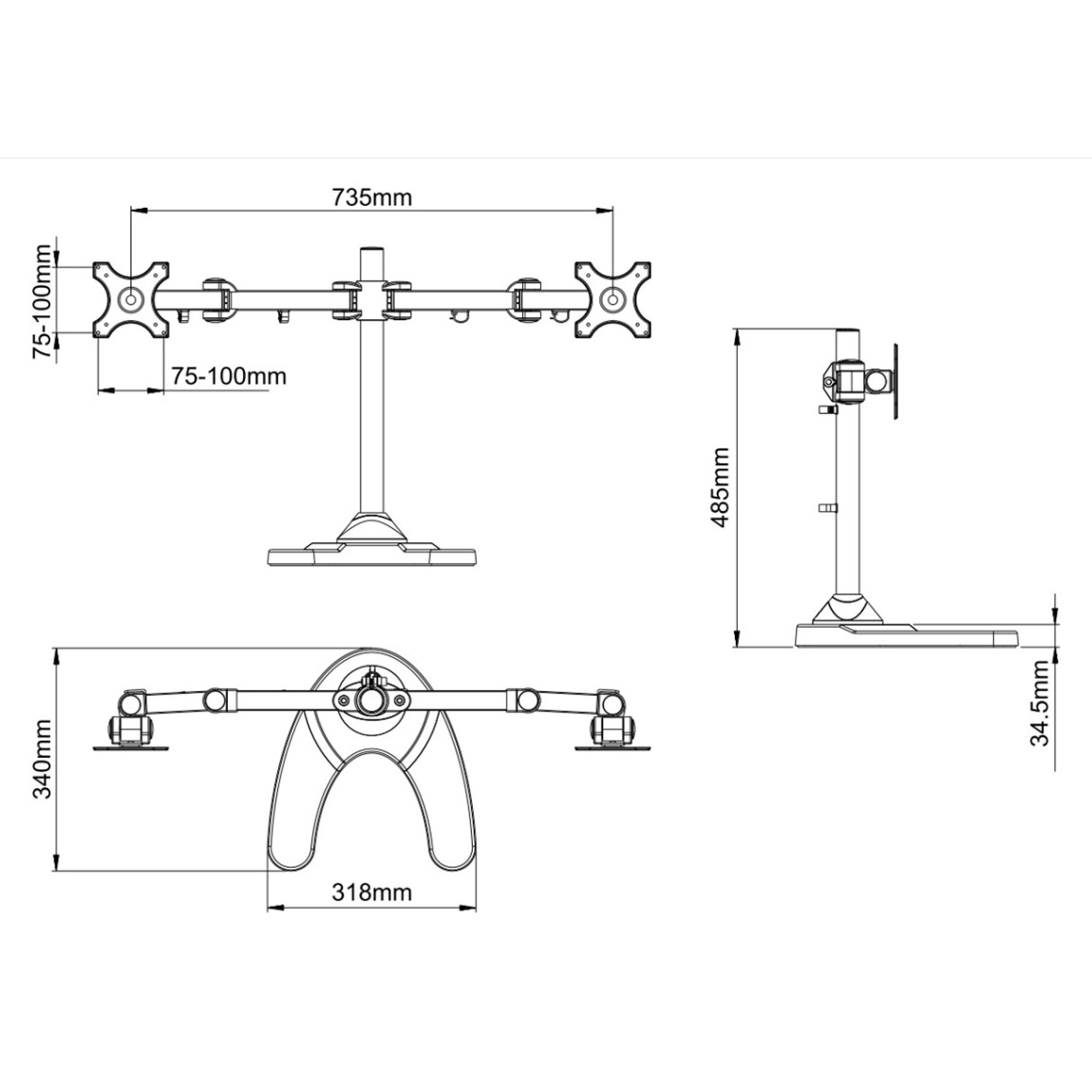 Compatible with all LCD/LED monitors that have VESA 100 or 75 mounting holes and weigh up to 10kgs