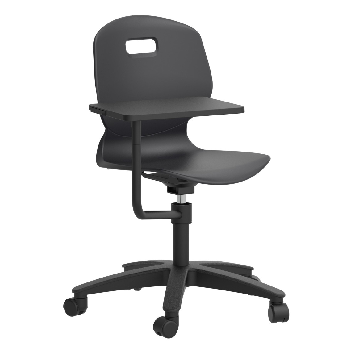 The swivel provides the same features as the Dynamic 3D tilt chair, with the same added comfort and move-ability, except that it is height adjustable only.