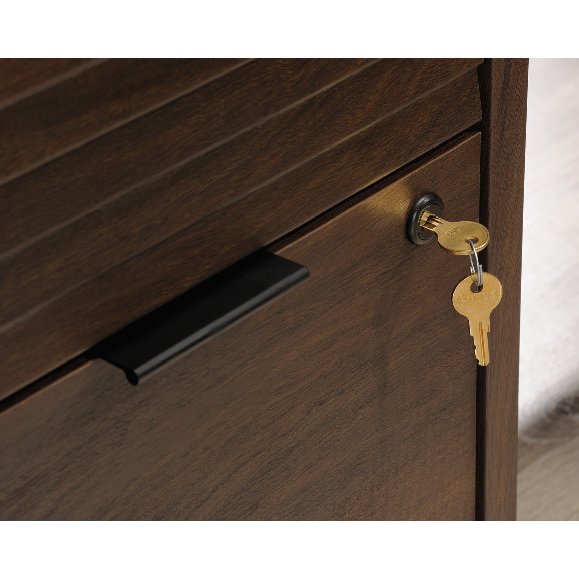 - Lockable lower filing drawer with full extensions slides holds letter legal size hanging files