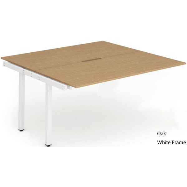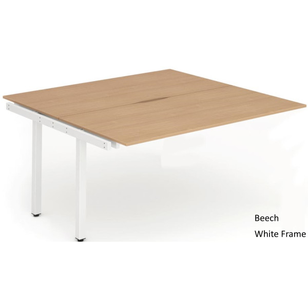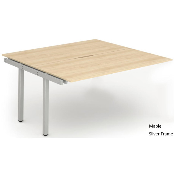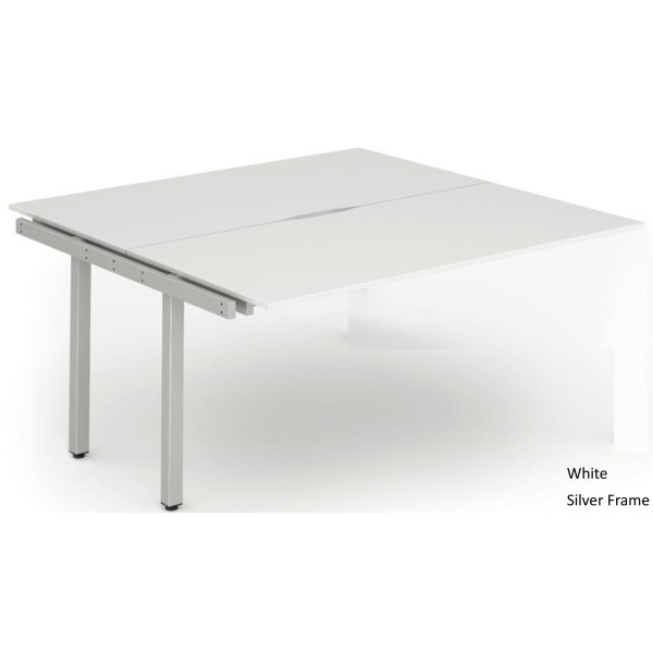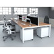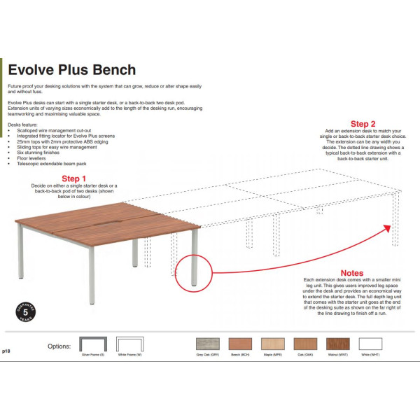 The Evolve Two Pod Extension Desk is part of the Evolve Bench Desking Range. It is available in Beech, Maple, Oak, Walnut and White as well as this, the Evolve Two Pod Extension Desk is available with a choice of 2 frame colours. The Evolve Desk is available in 3 width options (1200mm, 1400mm and 1600mm), features a scalloped back, 2mm protective edging, 25mm thick tops, a powder coated frame available in either silver or white, height adjusting floor levellers and space saving column legs.