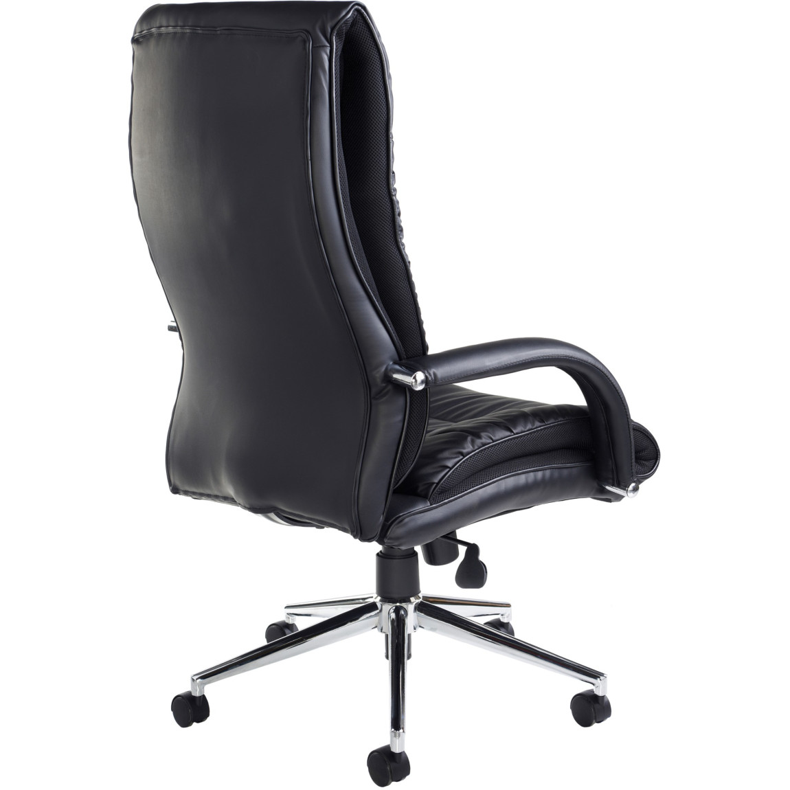 Portsmouth Executive High Back ChairBonded Leather in BlackNylon Black Arms with Silver Trim Cont..