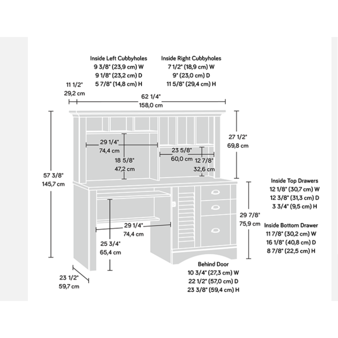 Height (Inc Hutch): 1457mm