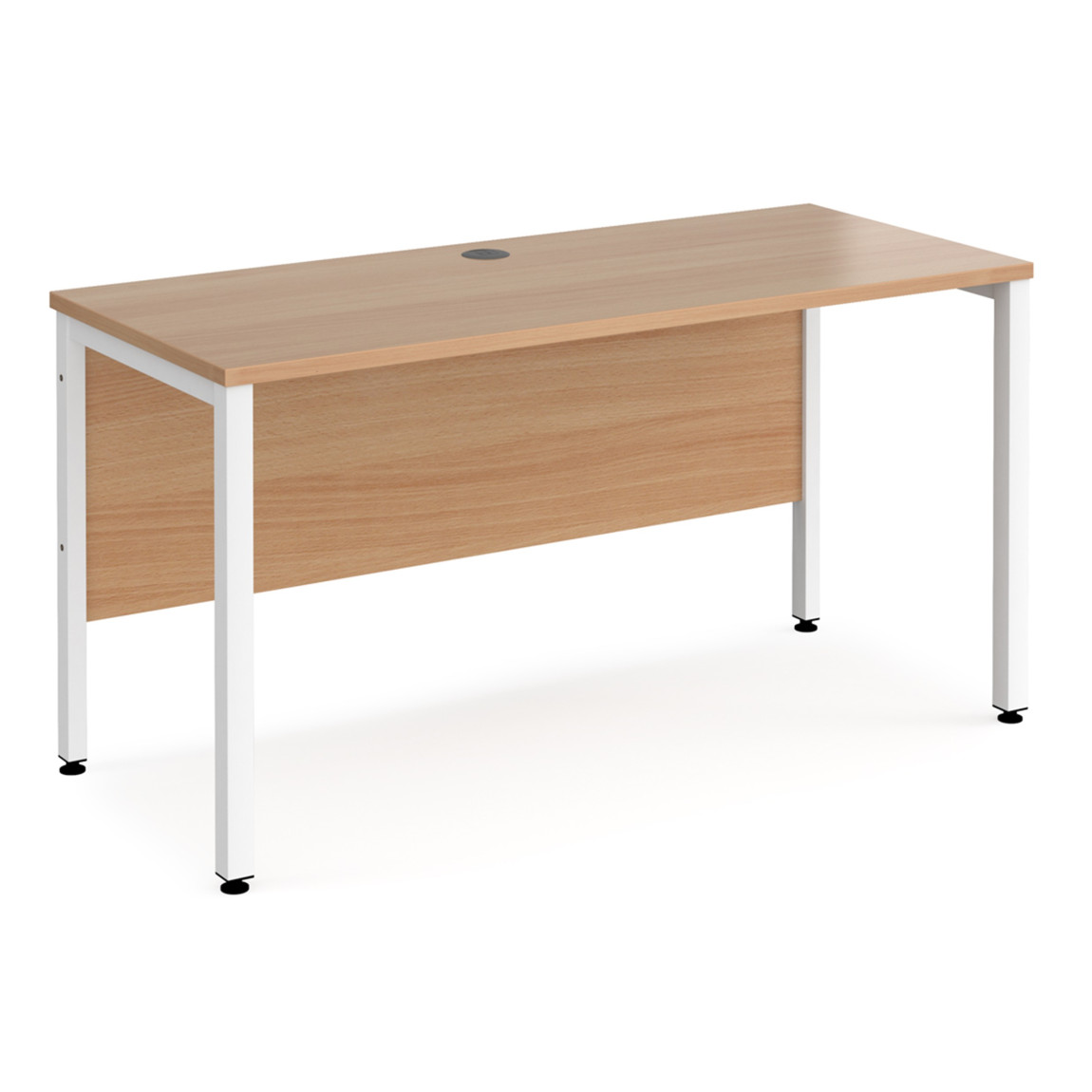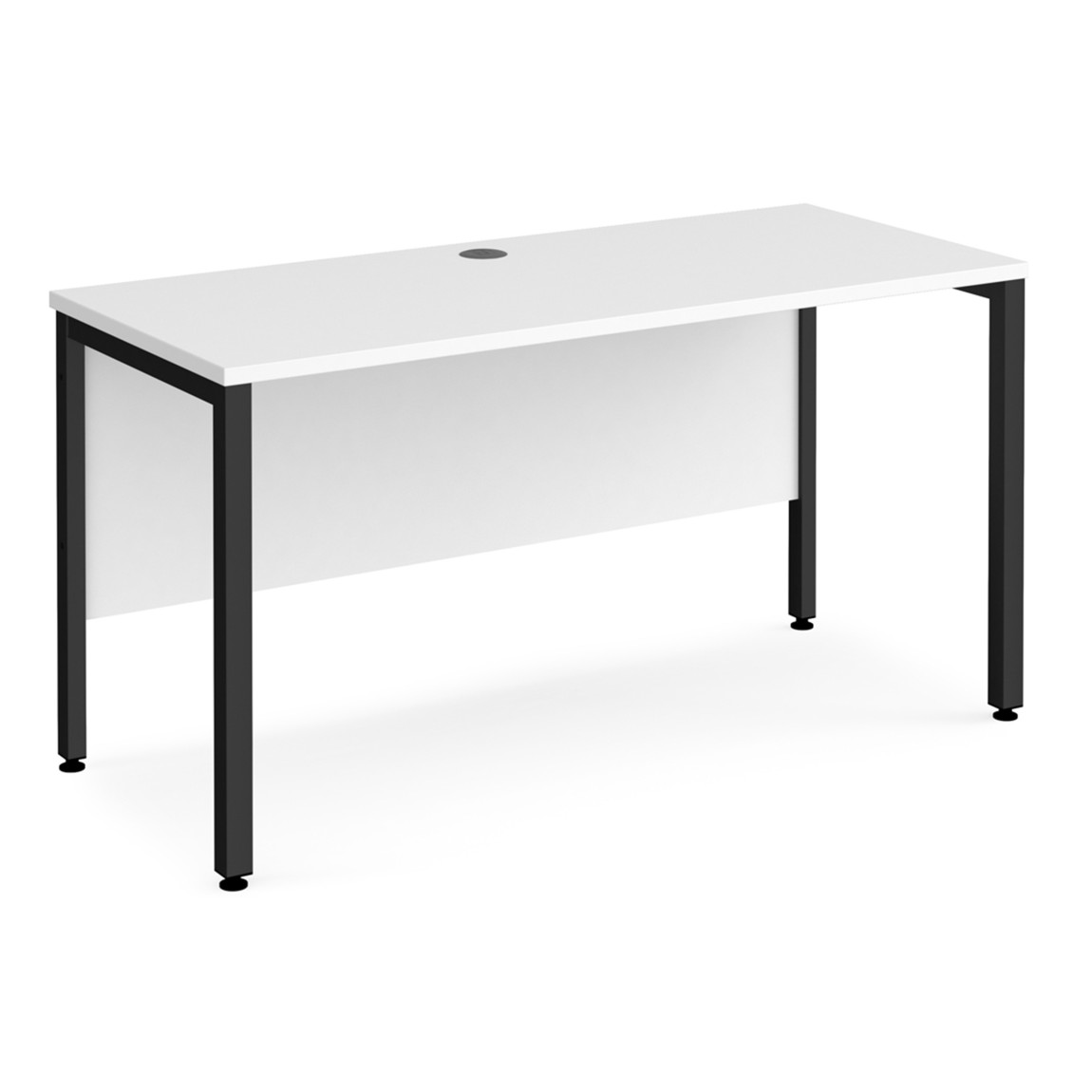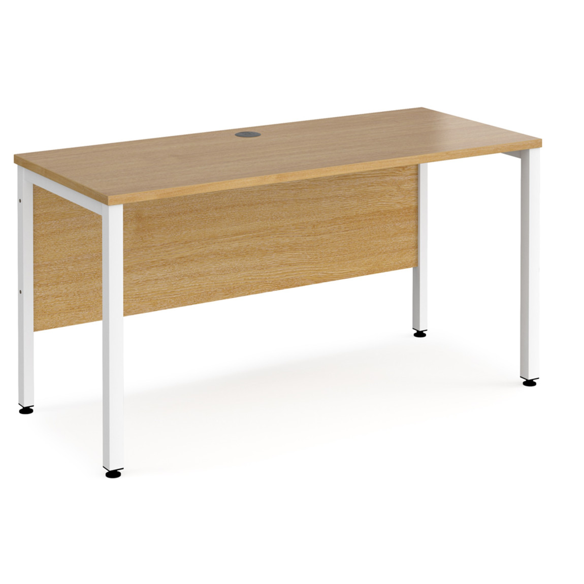 - Single straight desks 600mm deep with single cable access ports.