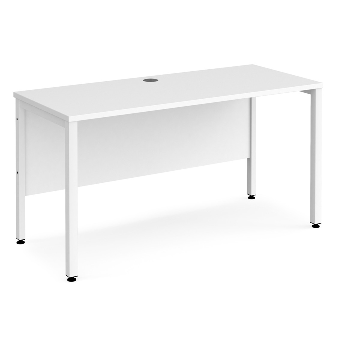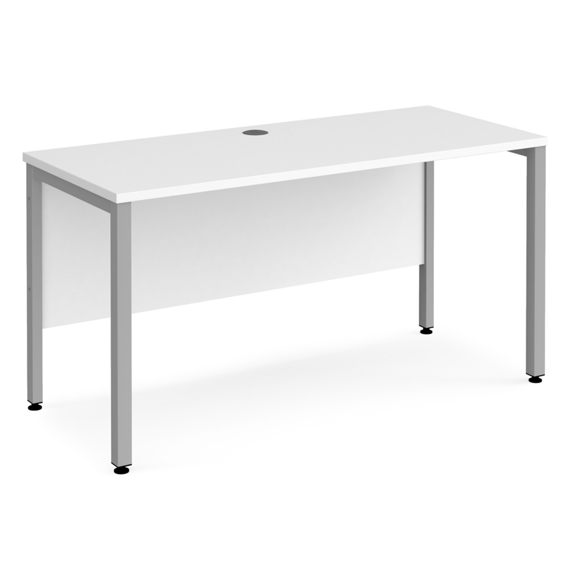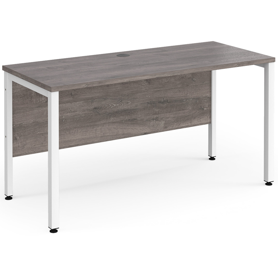 - Single straight desks 600mm deep with single cable access ports.