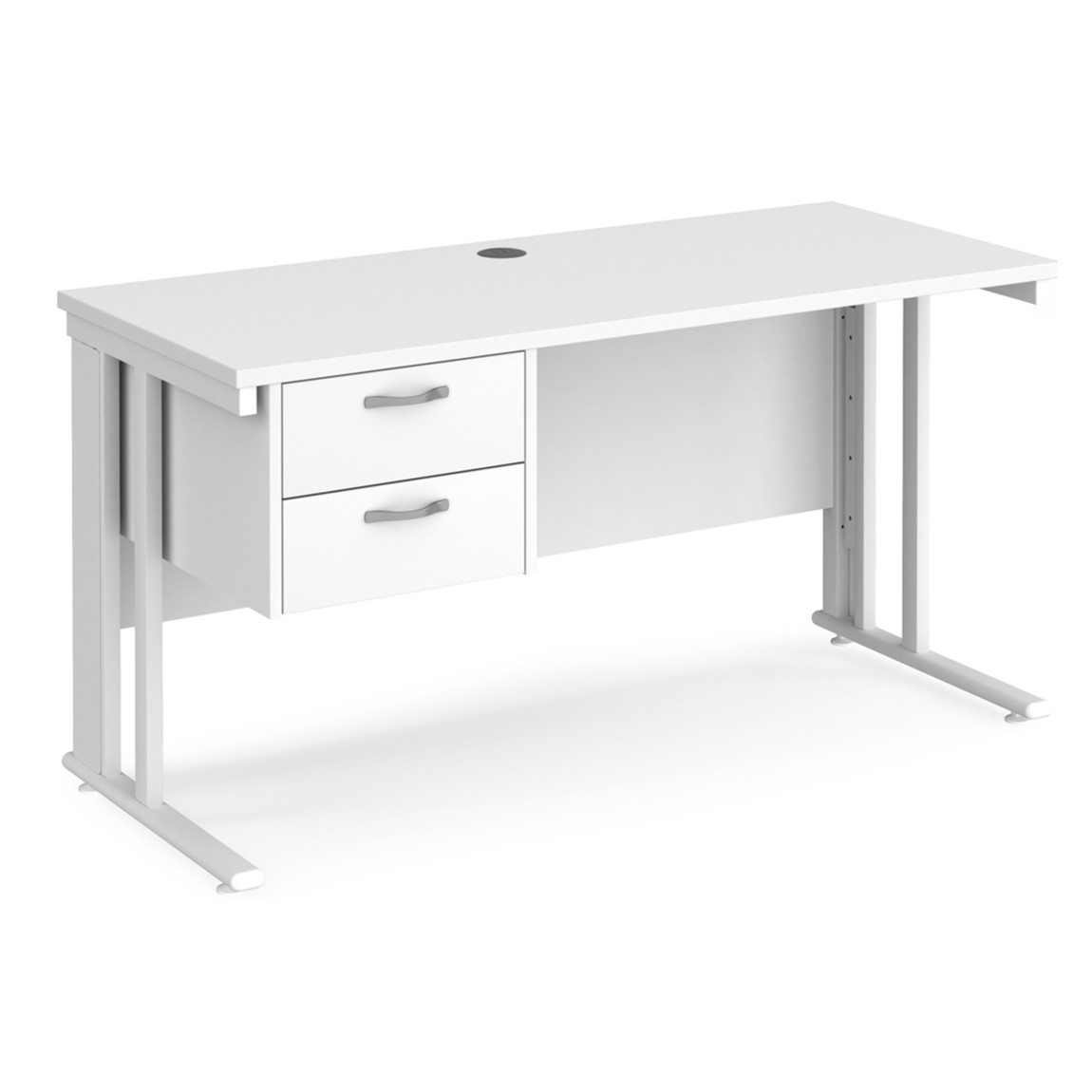 - Rectangular desks 600mm deep with white cable managed legs and two cable access ports