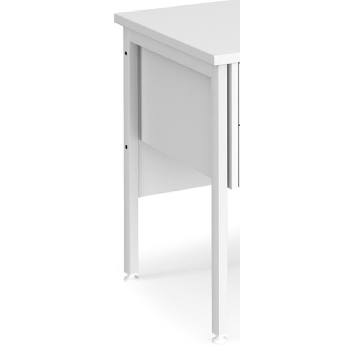 - Rectangular desks 600mm deep with panel end legs and two cable access ports.