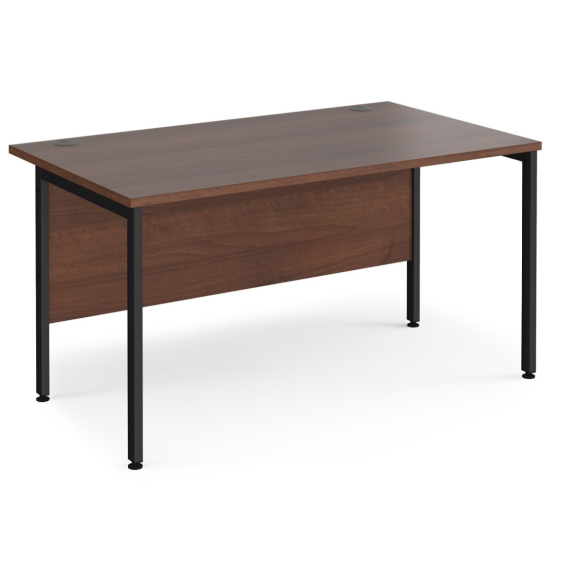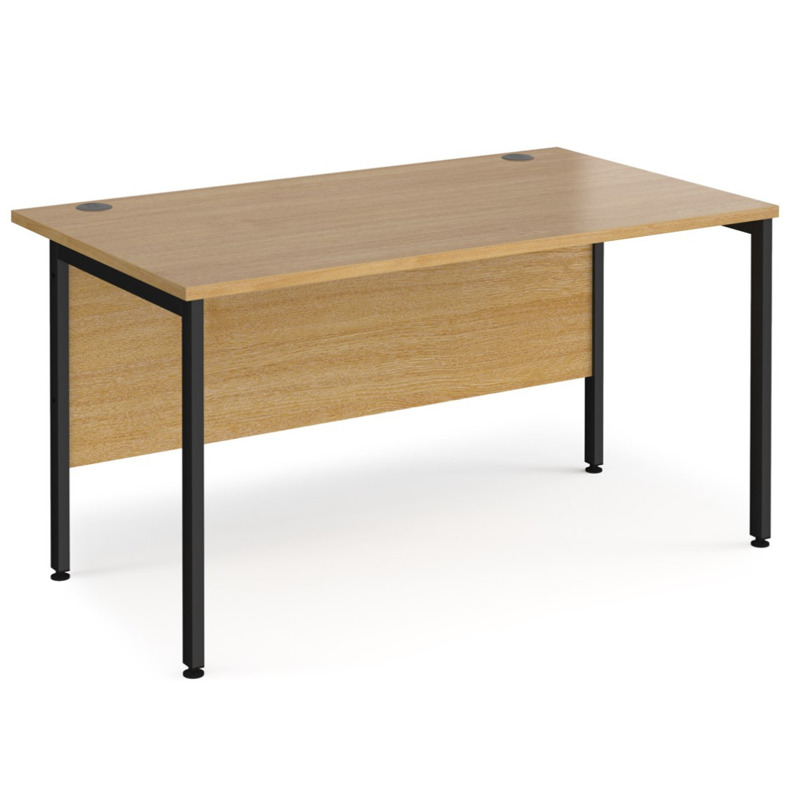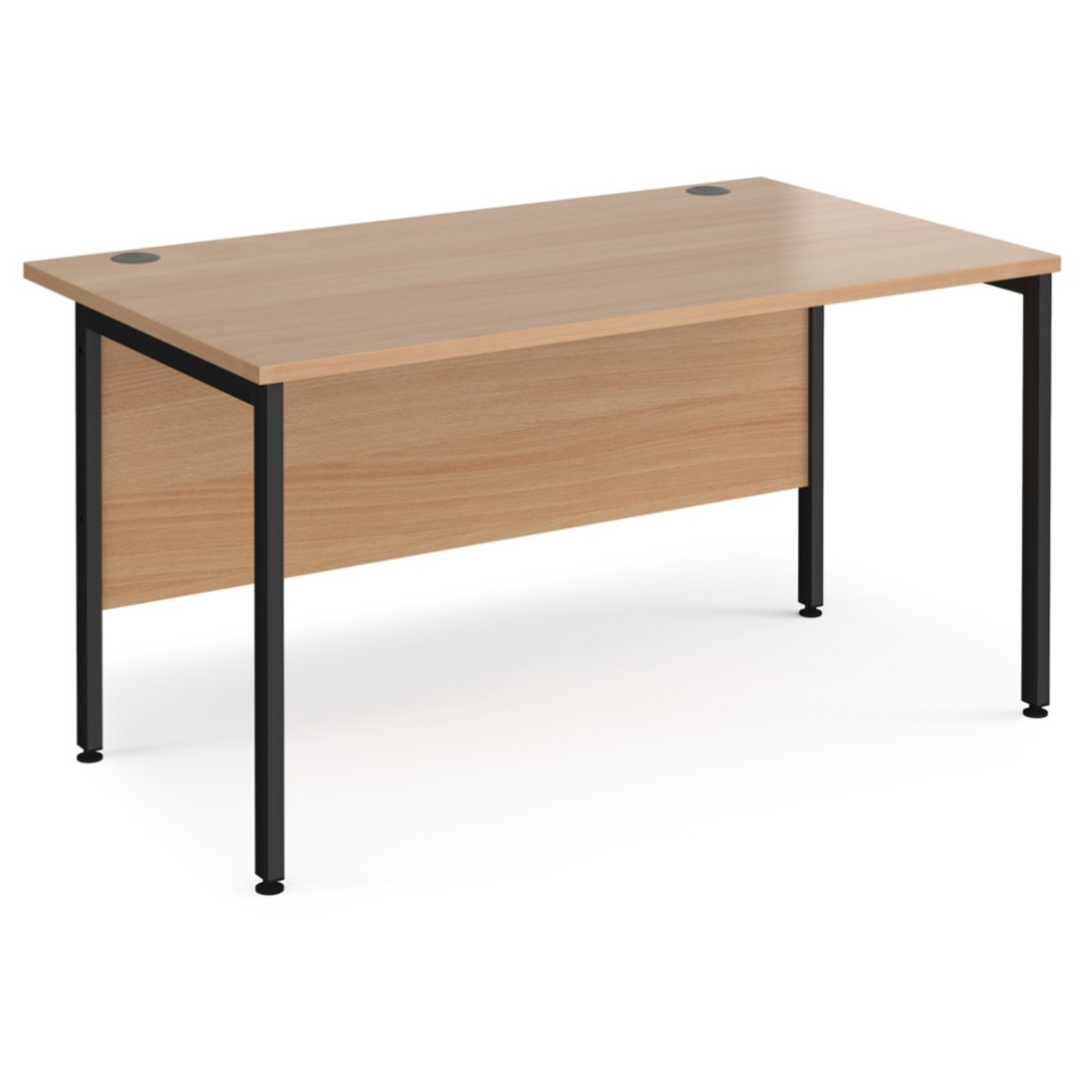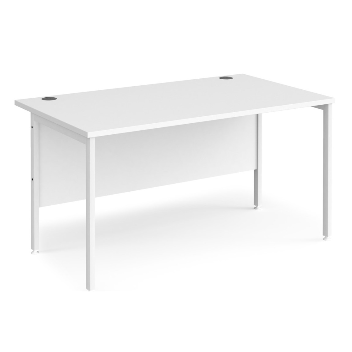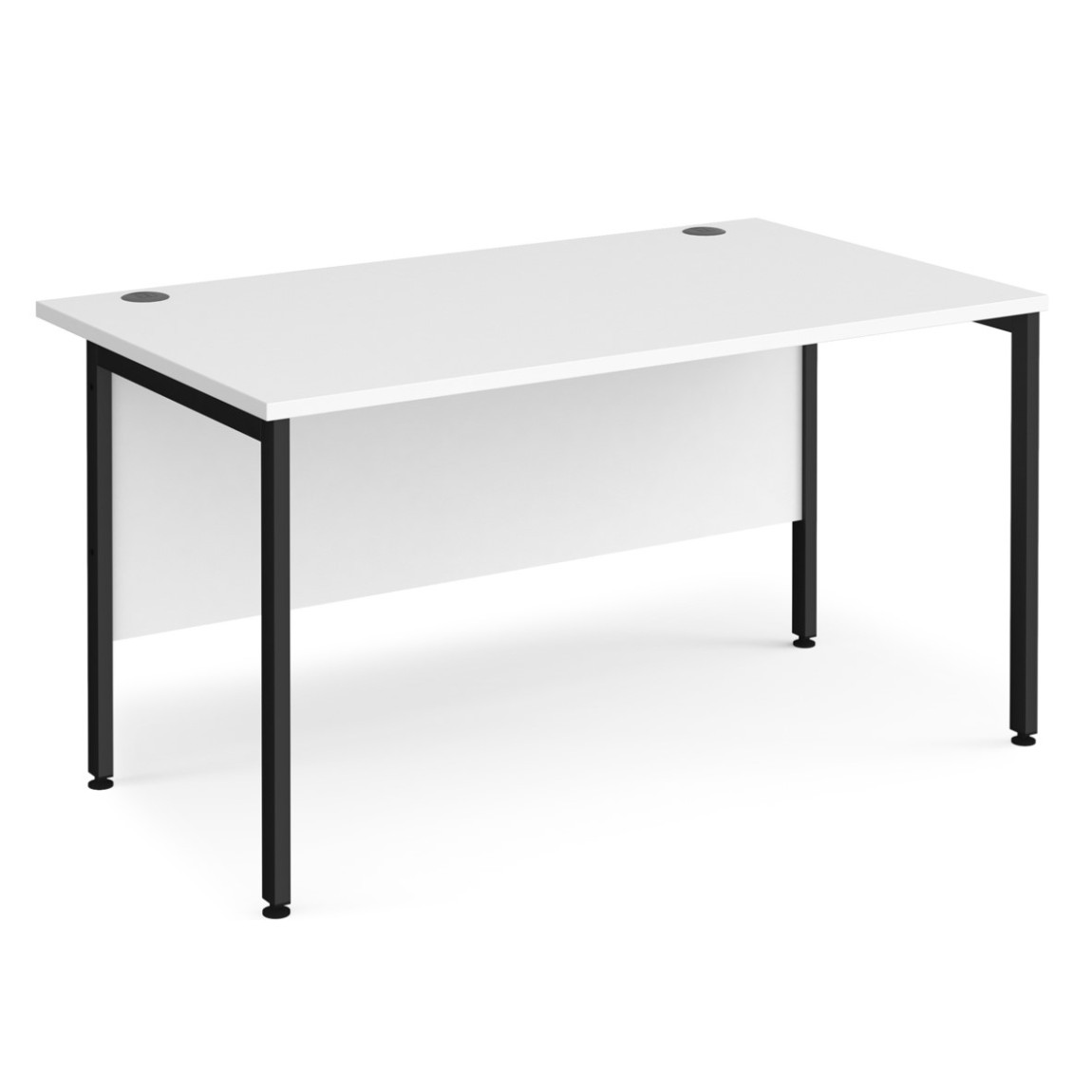 The Maestro H Frame Straight Desk is our straight office desk suitable for any office environment, it is available in a choice of 6 with options from 800mm to 1800mm wide and offers a fully welded H frame leg design which compliments each of the 5 colours this desk is available in. The Maestro H Frame offers 25mm thick tops, feet levellers, cable access ports and a heat and stain resistant MFC top.