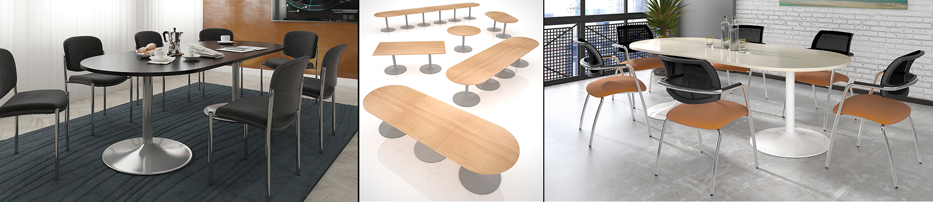 Stylish range of tables for any boardroom, finished with a silver steel trumpet base. Available with..