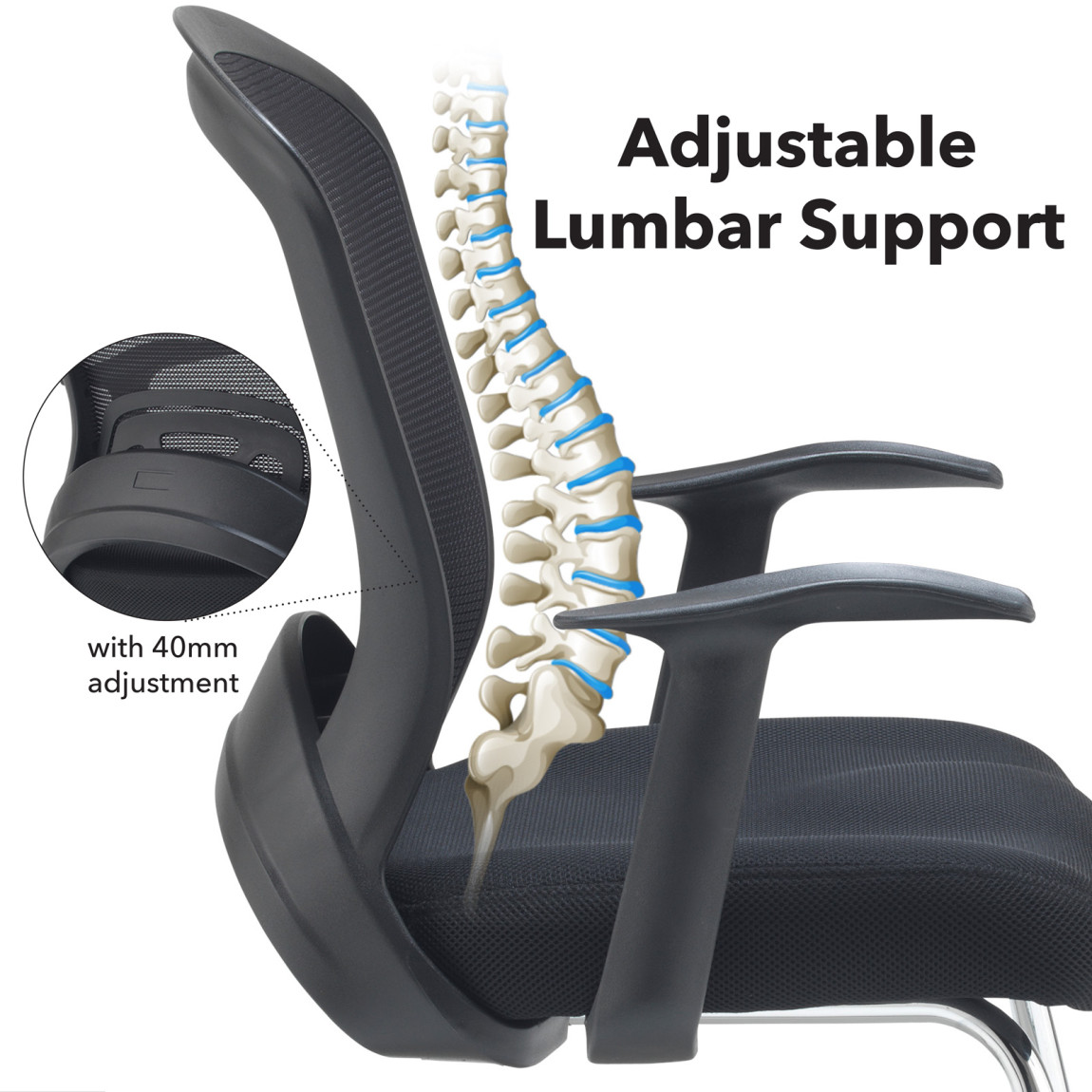 • Personalized lumbar support: The sculpted lumbar adjustment allows you to customize the chair to perfectly fit your lower back curve, preventing fatigue and discomfort.