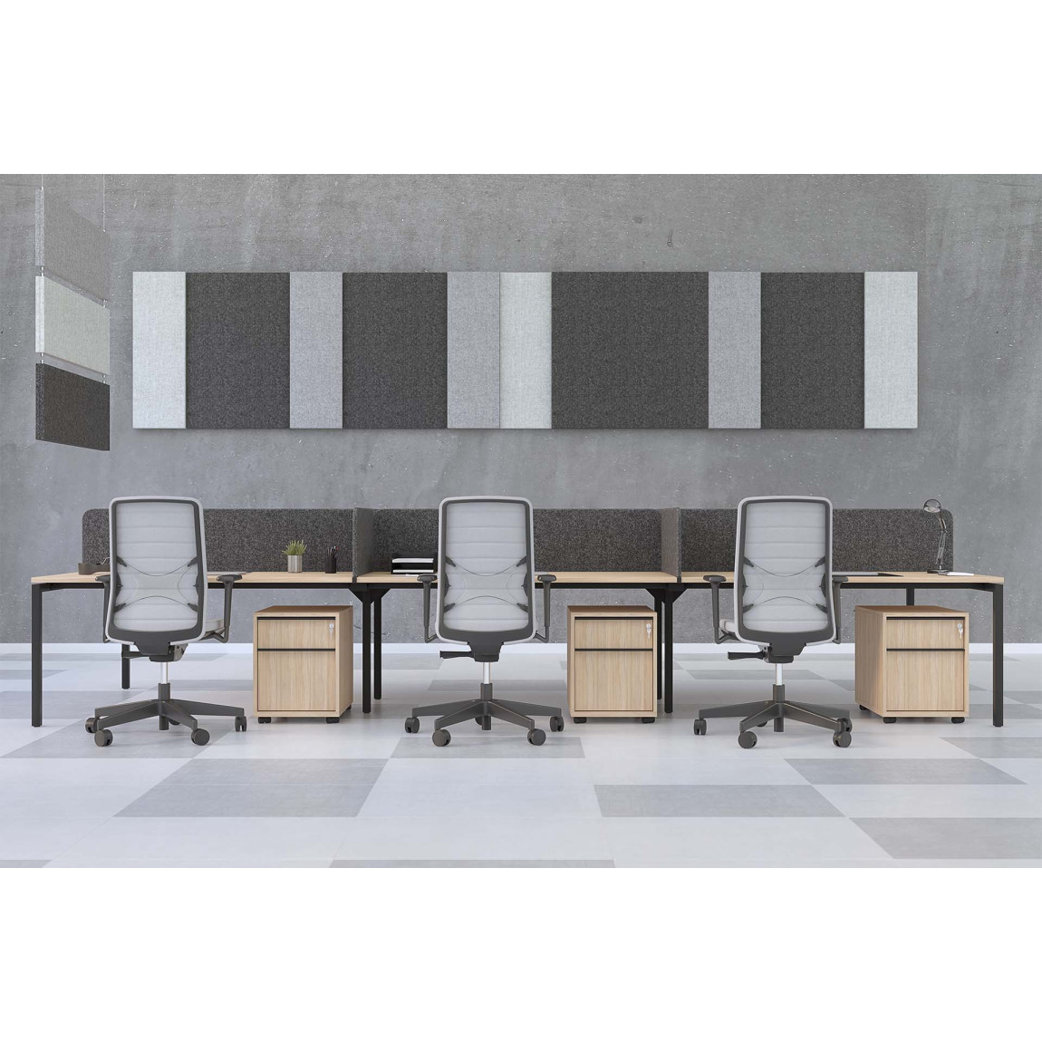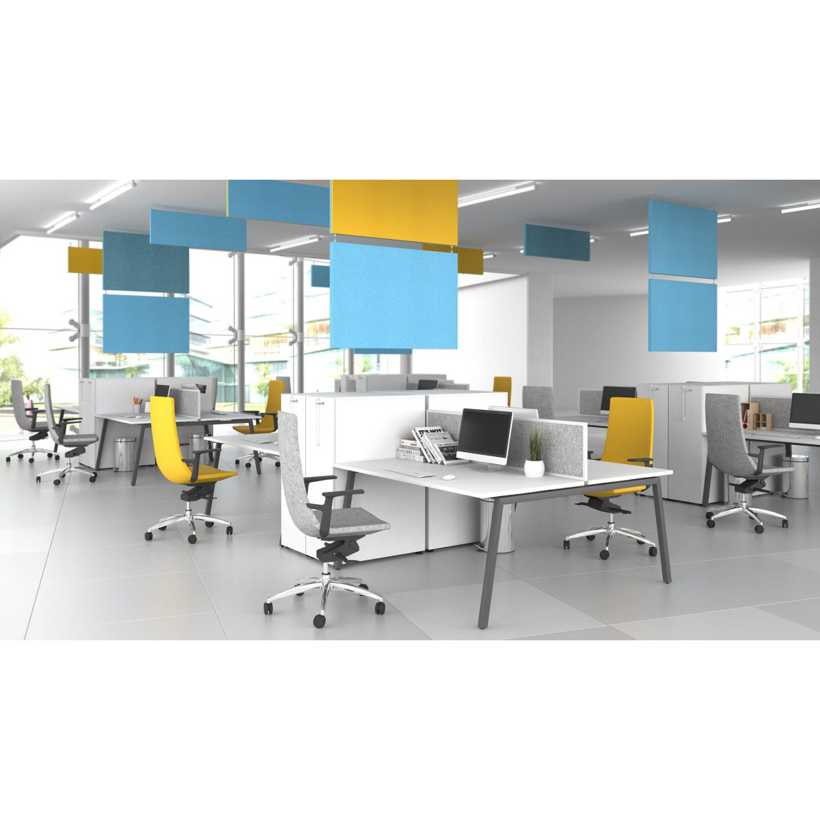 Designed for a dynamic workspace-Office life does not stand still: the number of employees and the nature of their work is always changing. You ca adapt bench desks consisting of two desks to your office dynamics by using supplementary partitions which allow you to easily increase the number of workspaces.