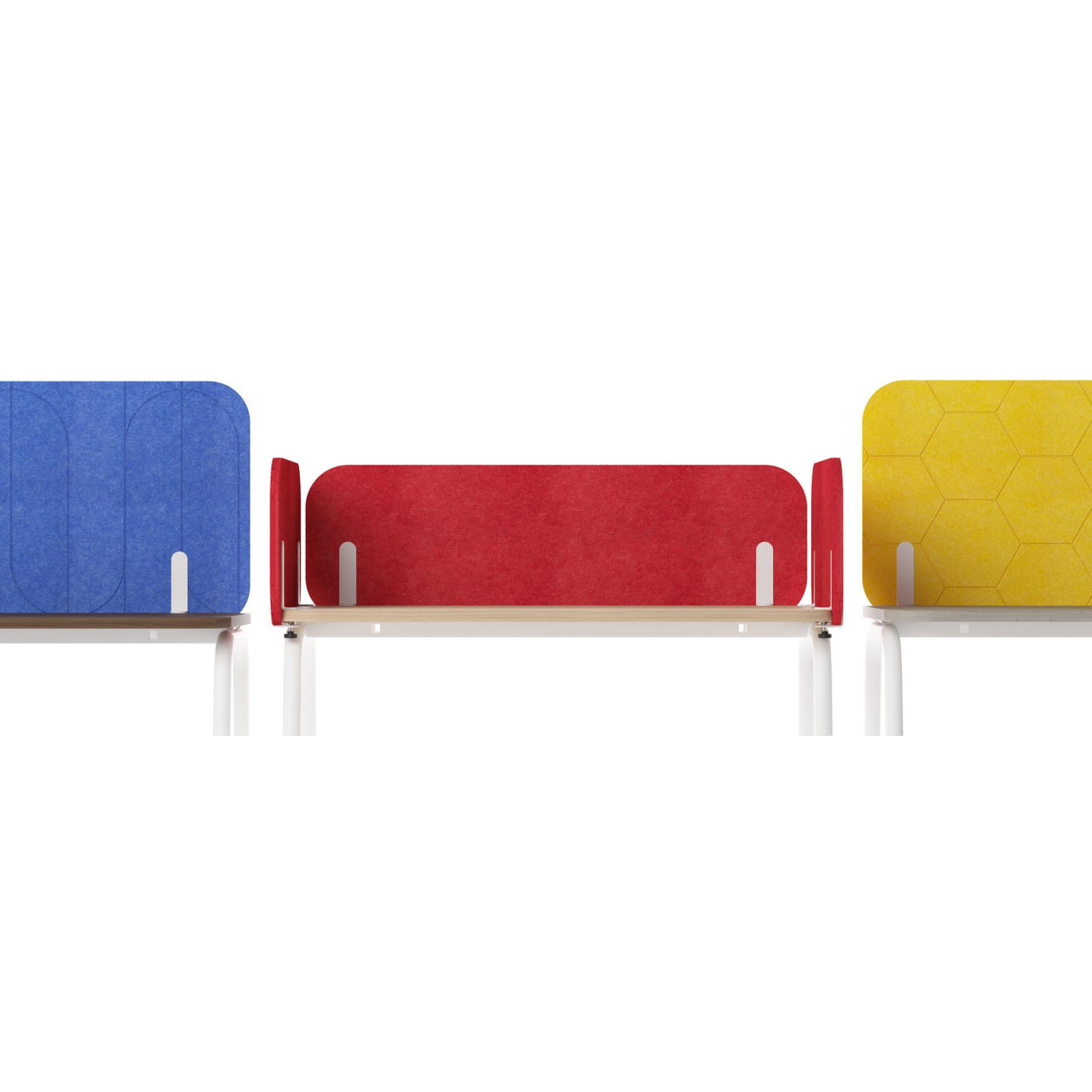 ROUND PET acoustic screens are suitable for ROUND single and bench desks, designed for both fixed and sliding desktops. Available in different widths and heights, various colours and patterns (with rounded lines or honeycomb motif) ROUND PET desk screens create a cosy workplace environment and fit harmoniously in diverse interiors.