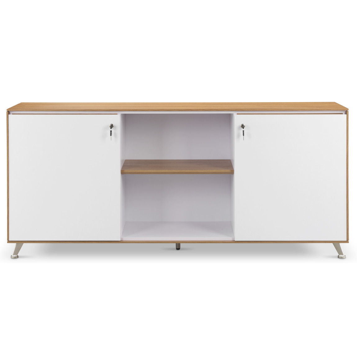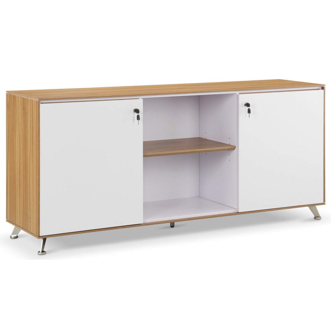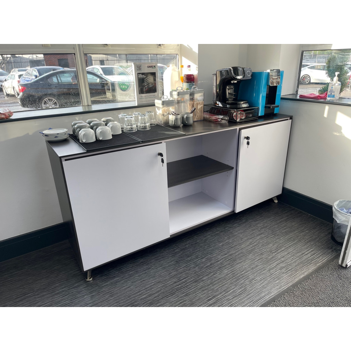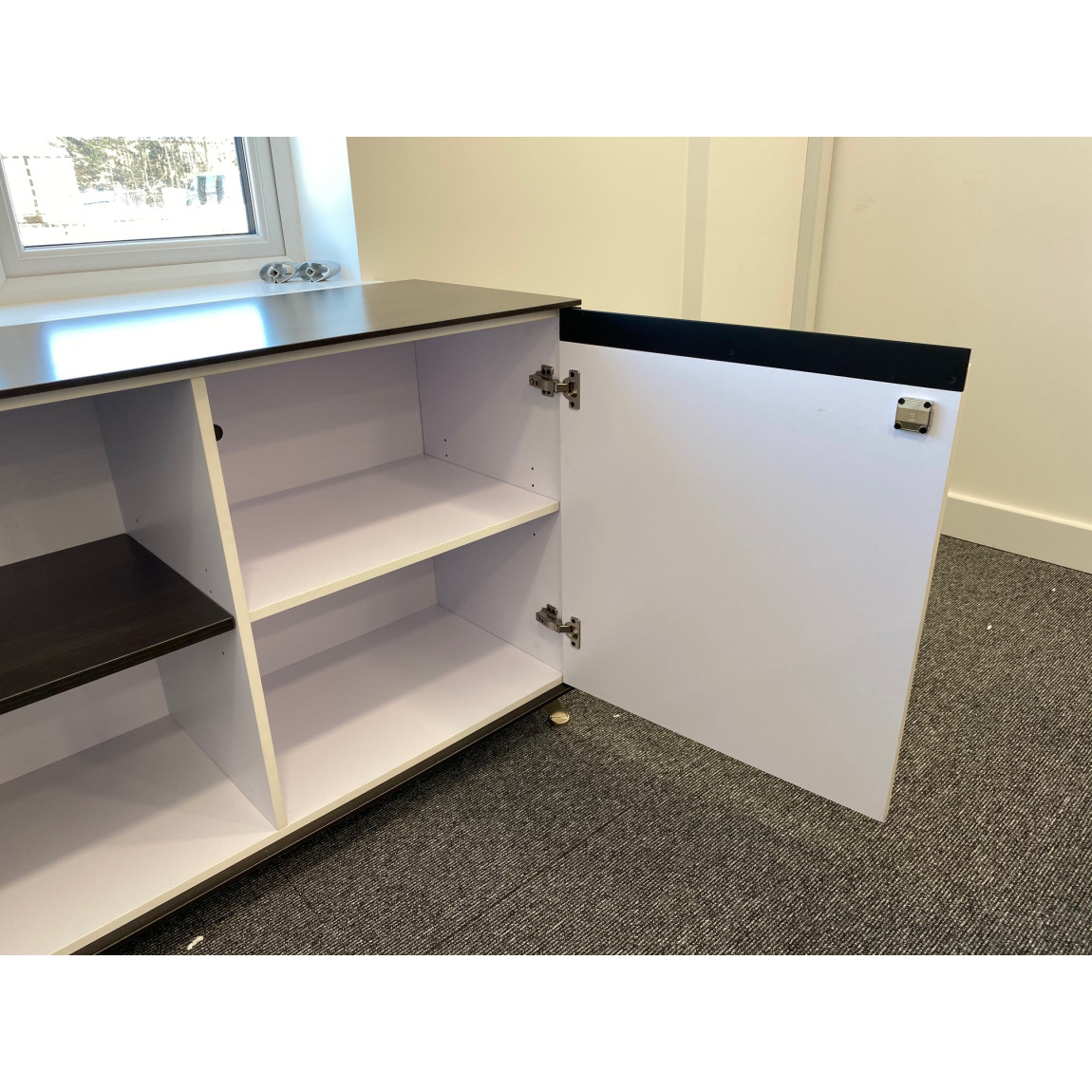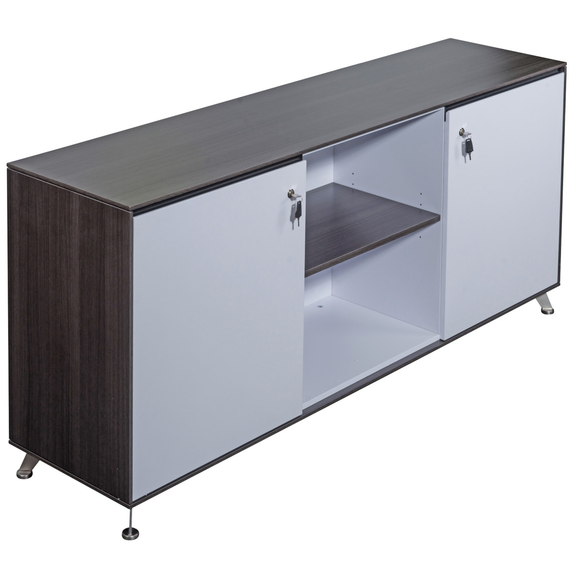 The Nero Executive Double Door Credenza Unit with three adjustable shelves, colour is Anthracite & American Black Walnut. Hinged keys supplied with every unit. Adjustable shelving as standard, raised metal feet to credenza and cupboard.