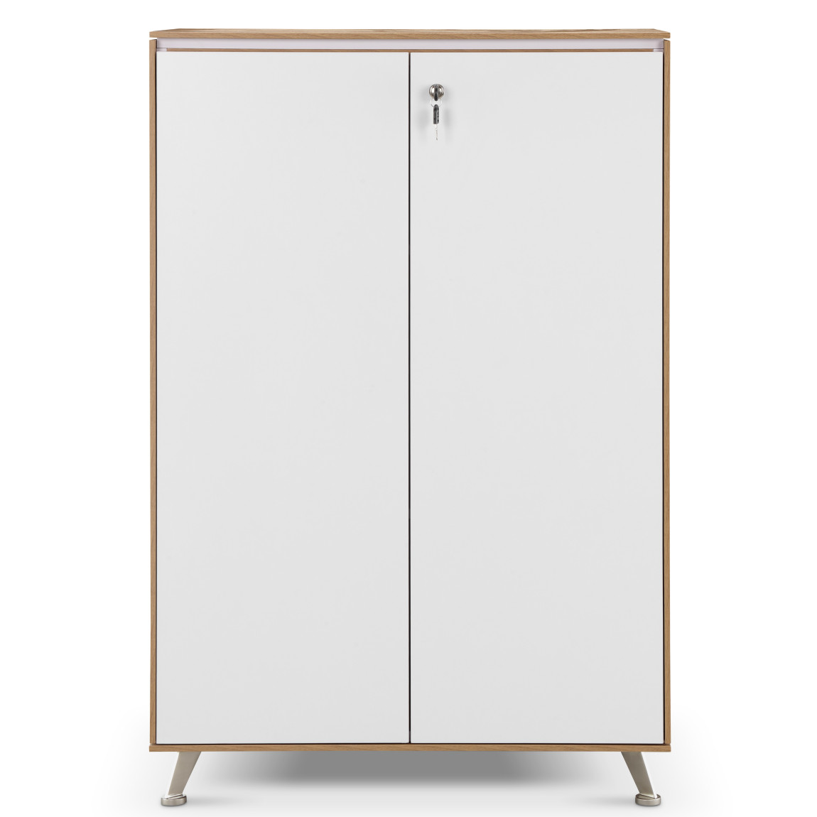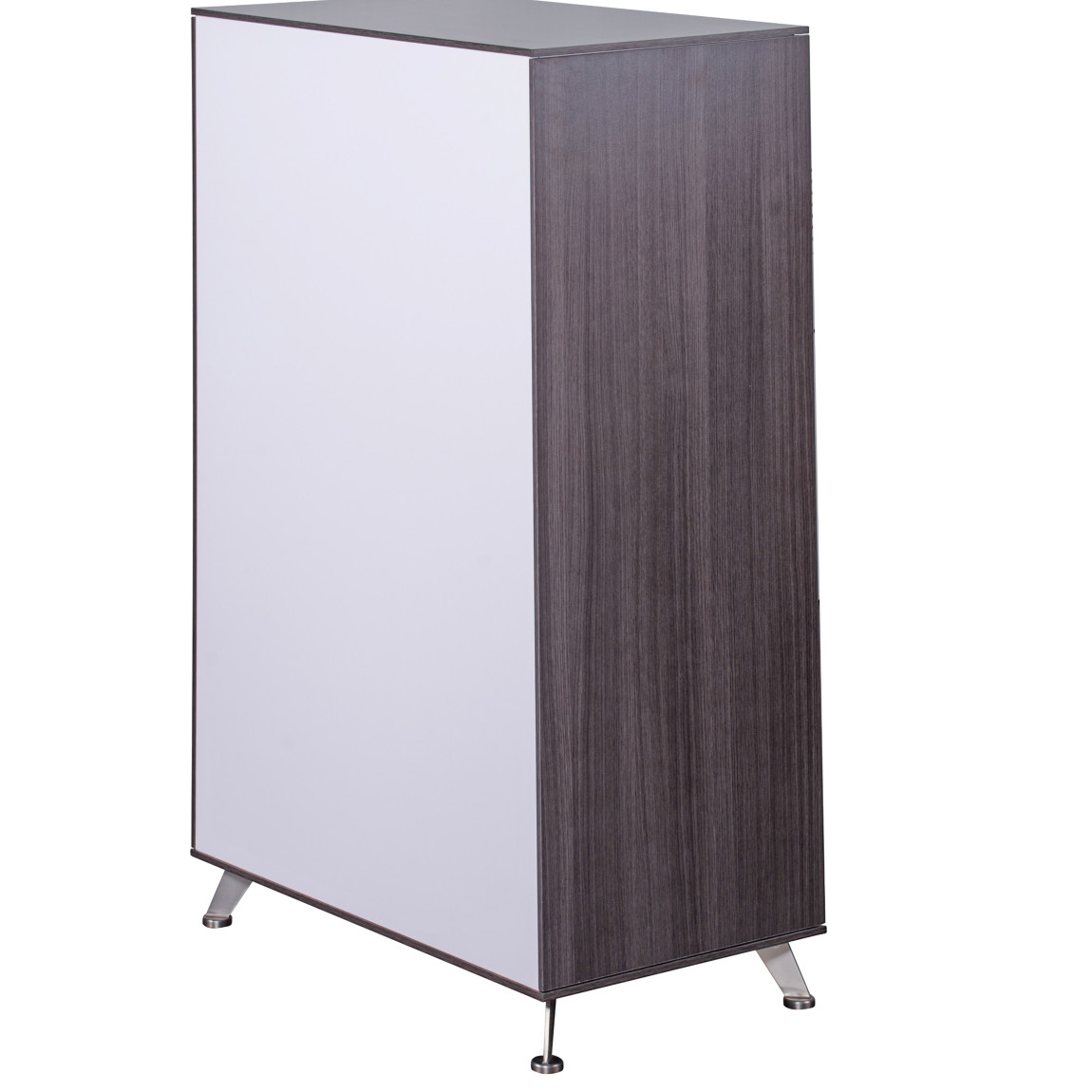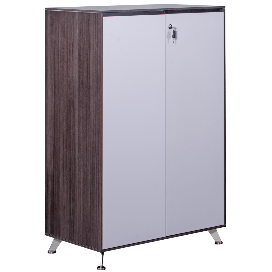 The Nero Executive Double Door Storage Unit in Anthracite and American Black Walnut. Hinged keys supplied with every unit. Adjustable shelving as standard. Raised metal feet to credenza and cupboard.
