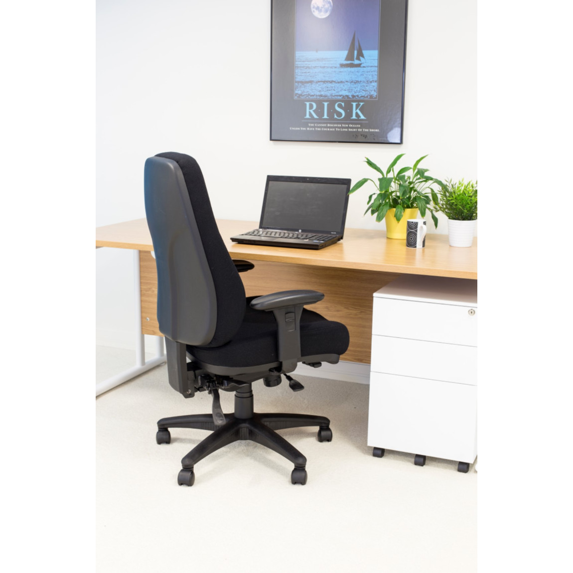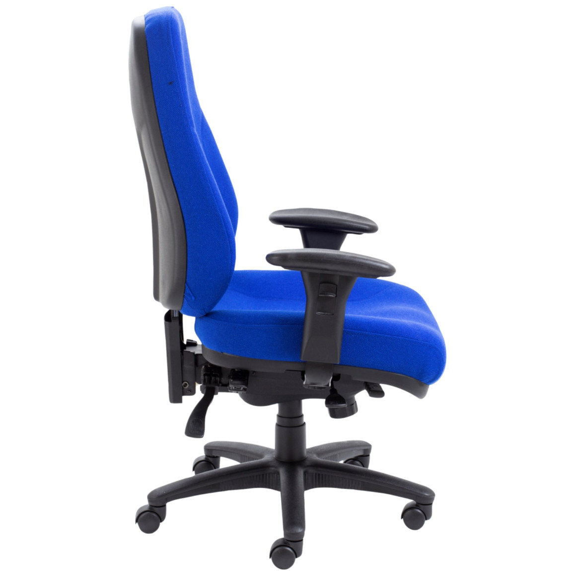 The Cheetah is our heavy duty chair approved for 24 hour use. It is available in 3 colour options (black fabric, ruby fabric and marine fabric), features adjustable arms, ratchet back height options, an adjustable asynchro torsion mechanism and offers a 5 year component guarantee, a 2 year upholstery guarantee, is suitable for 24 hour use and has a maximum weight capacity of 152kg.