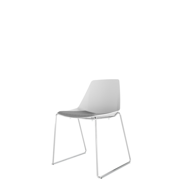 Polypropylene Shell Chair With Upholstered Seat Pad and Chrome Steel Skid Frame