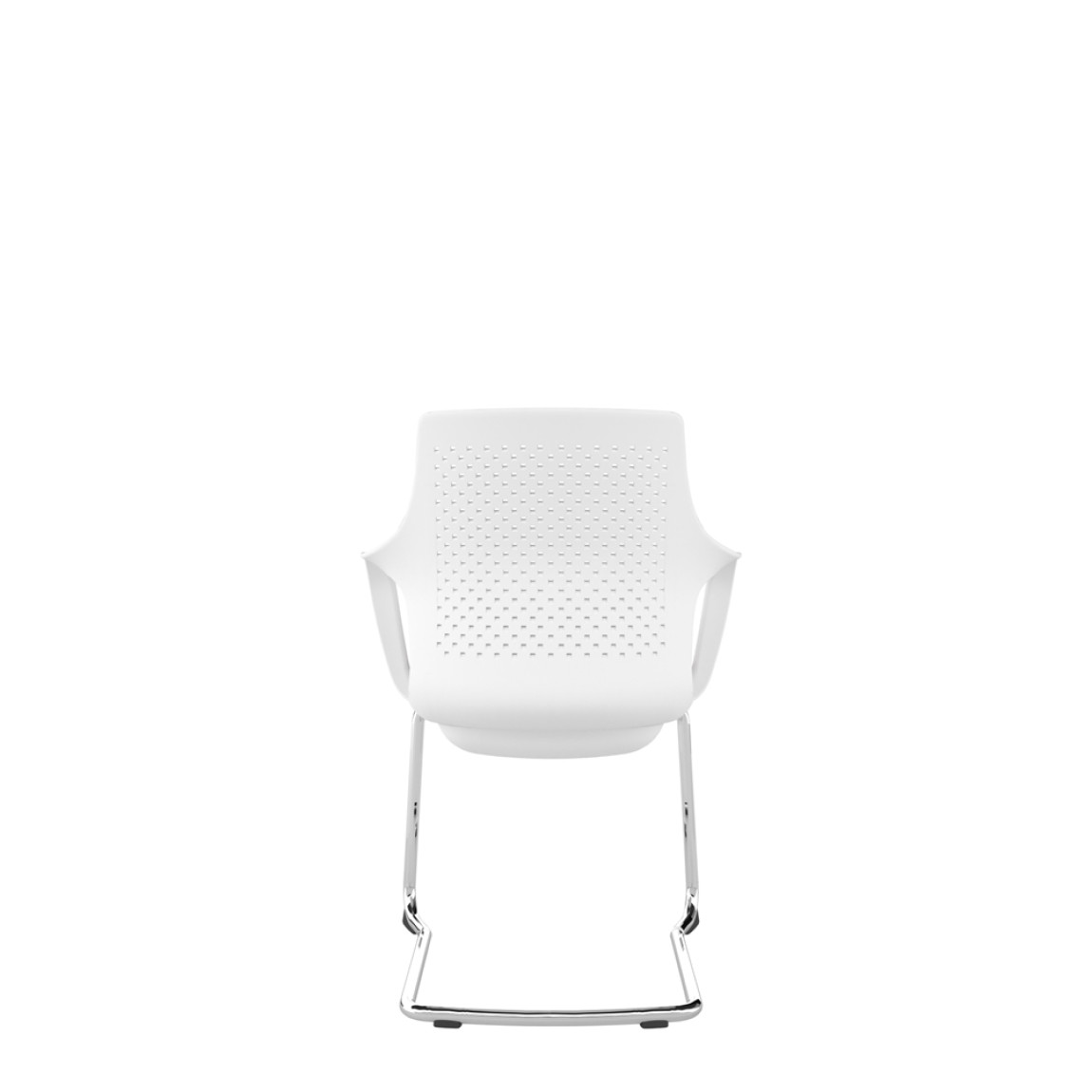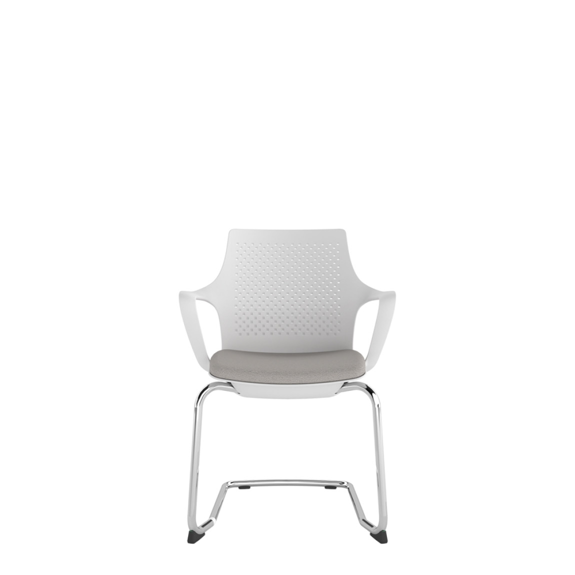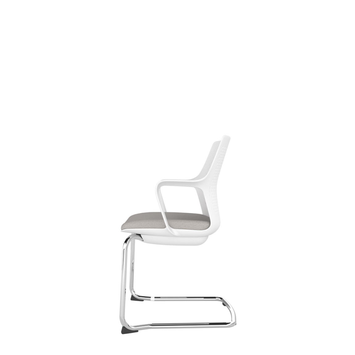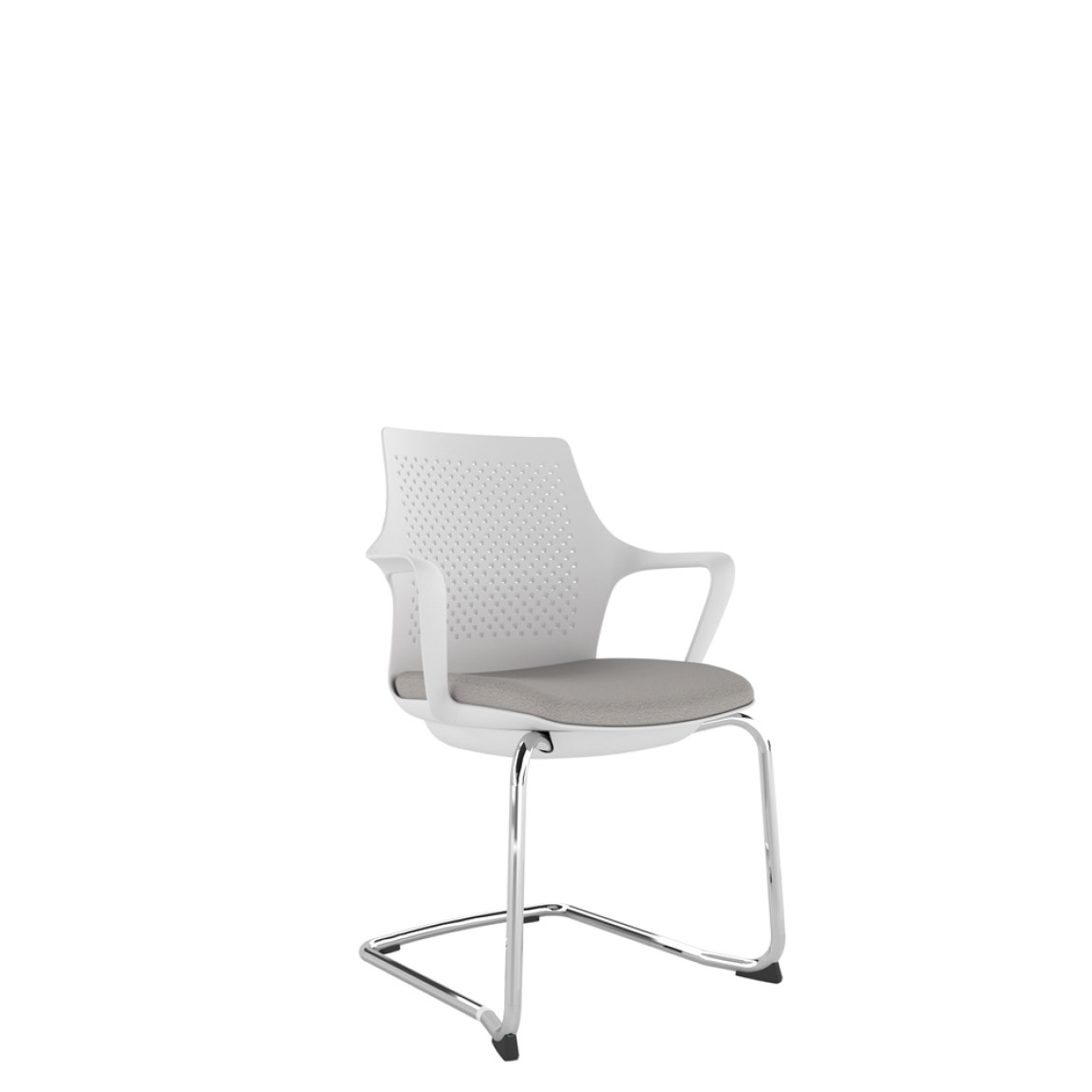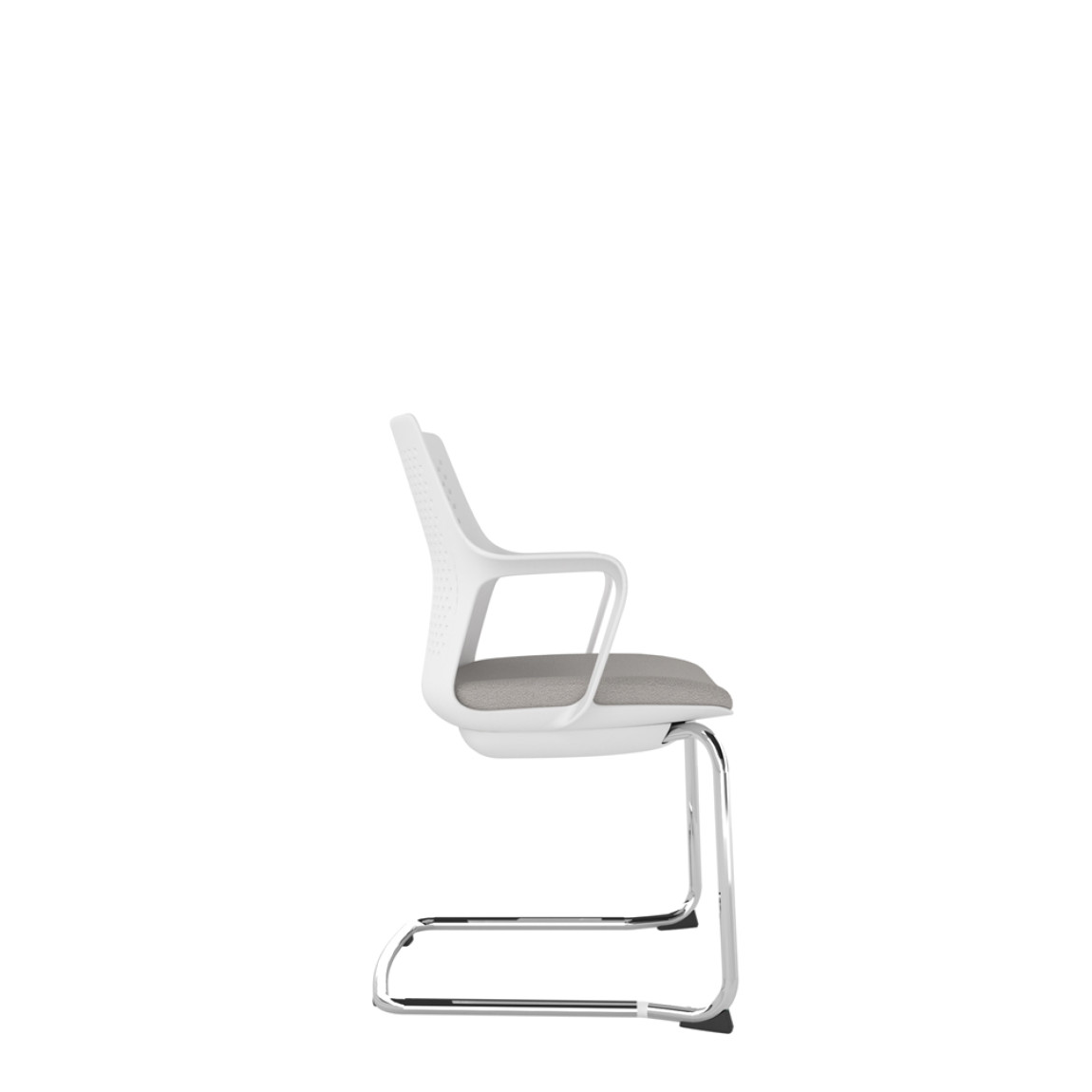 White Perforated Back Chair With Integrated Arms, Upholstered Seat And Chrome Cantilever Frame