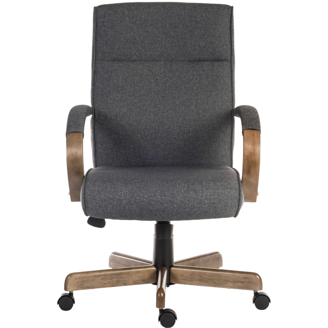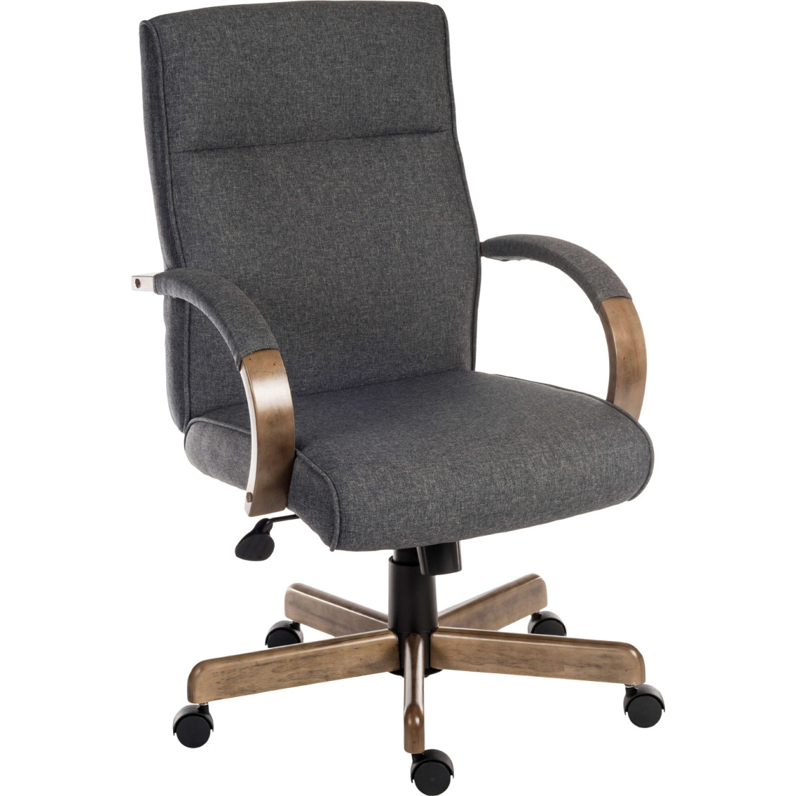 The Grayson is our grey fabric executive office chair, ideal for use in both home or commercial offices, the Grayson is the perfect addition to your office space. It boasts a Grey Fabric upholstery with matching padded arm covers, Driftwood effect wooden fixed armrests and base, a height adjustable seat (via gas lift) and a reclining function with tilt tension. They Greyson is an 8 hour office chair with a maximum weight capacity of 115kg