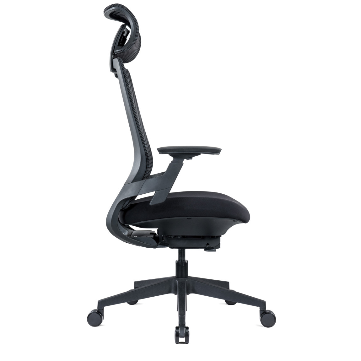 High Back Mesh Operator Chair With Adjustable Headrest.  Cushioned airflow mesh seat, nylon she..