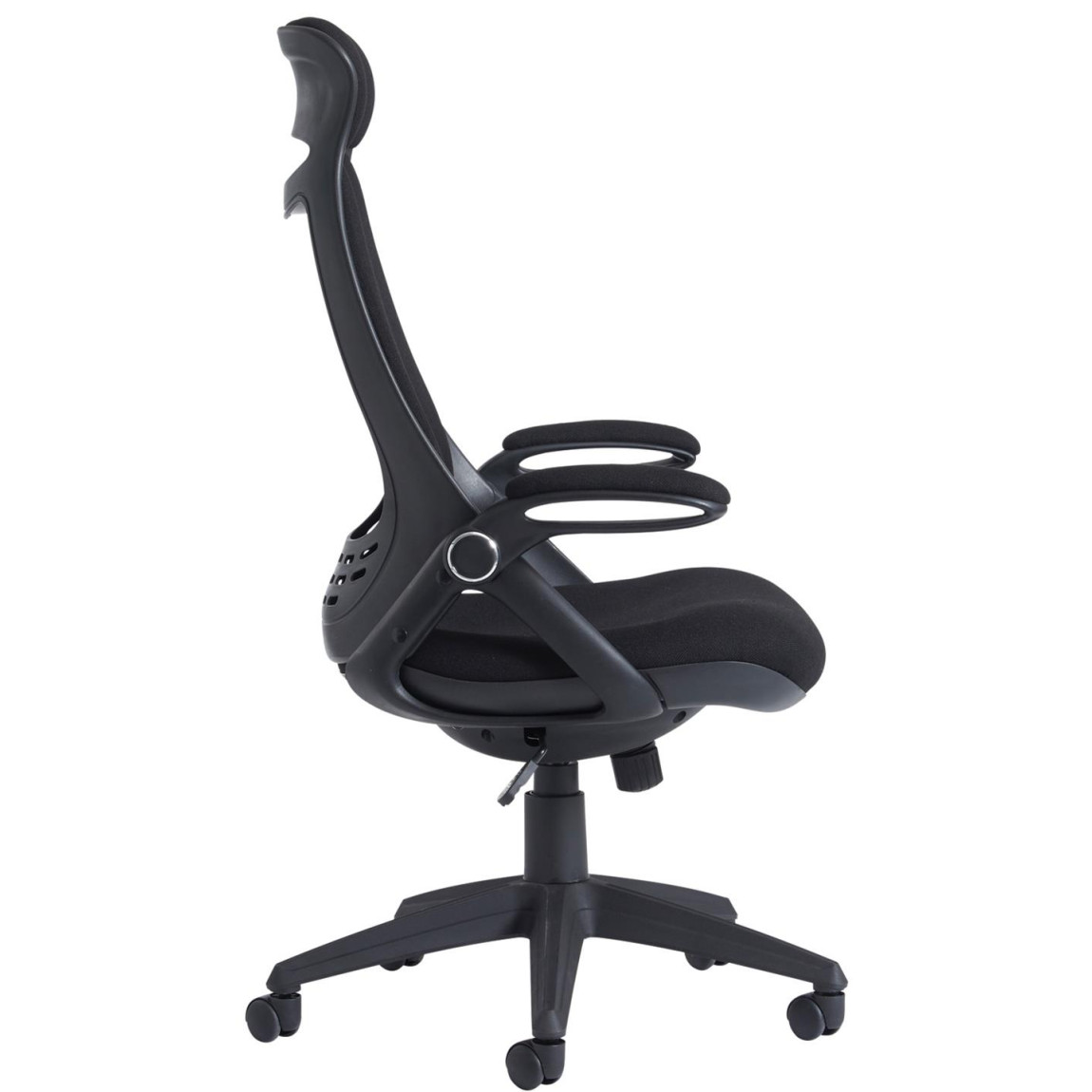 The Tuscan is our fabric operator office chair, available in black fabric or blue fabric, it features a head support and pivoting arm rests offering support throughout the day, it has a 115kg weight capacity and comes with a nylon 5 star base. As well as this, the Tuscan comes with a 2 year guarantee and free next day delivery.