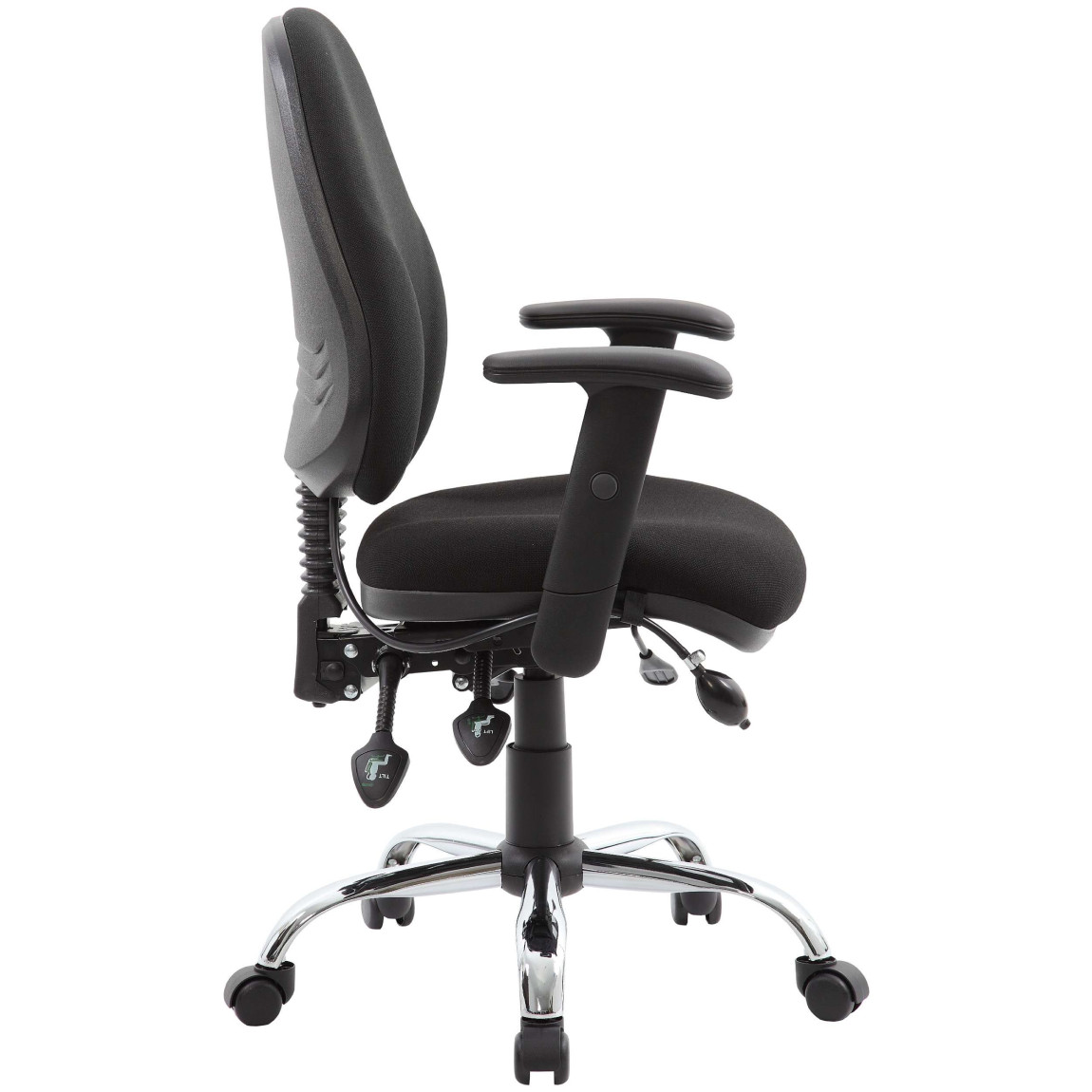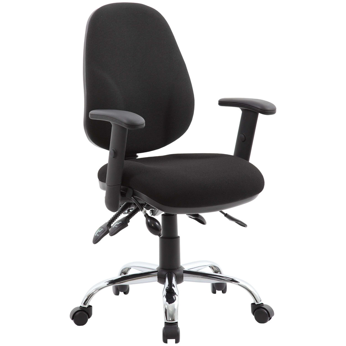 The Harrier takes every component needed from an operator into an all-in-one ultimate operator office chair. The impressive 4 lever mechanism includes seat height, seat tilt, back tilt, and seat depth adjustment. Alongside these features, you also have an inflatable adjustable pump-up lumbar support to fit your back and a hand-wheel height adjustable back. Finished off with height adjustable arms this chair is everything you need in a busy office environment.