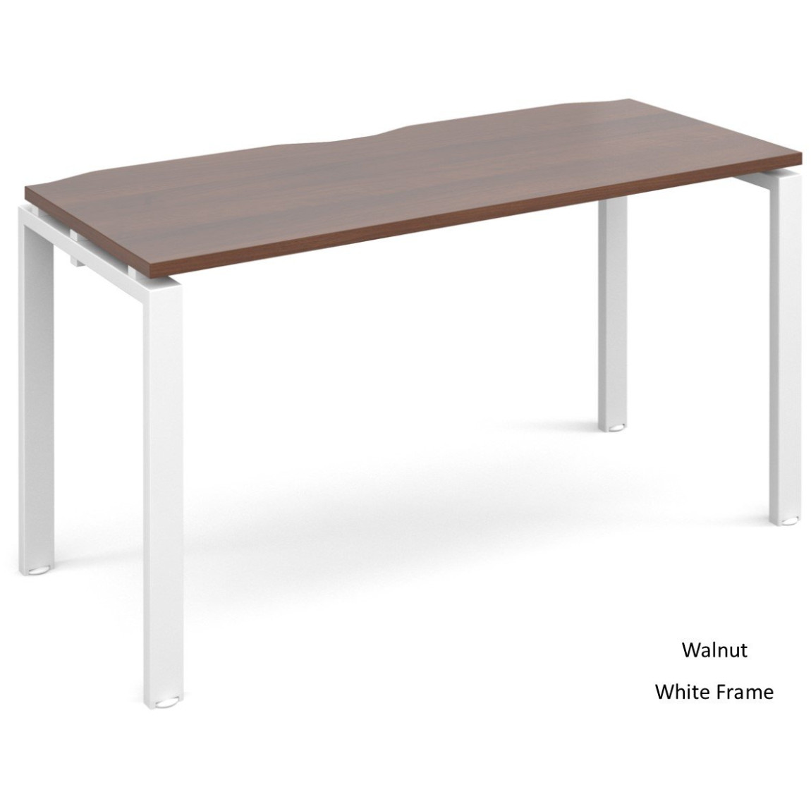 The Adapt Single Starter Bench Desk offers a clean and minimal look to any office environment. The Adapt Bench Desks are available in a choice of 4 colours (Beech, Walnut, White or White with Oak Sides) and 3 frame colours (Black, Silver or White) the bench desks will suit any office. They offer 25mm thick tops, scalloped cut outs in the desk top for cable management and a sturdy steel subframe.