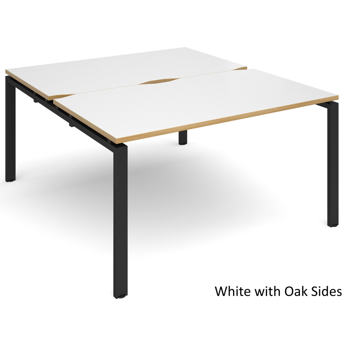 The Adapt Double Starter Bench Desk offers a clean and minimal look to any office environment. The Adapt Bench Desks are available in a choice of 4 colours (Beech, Walnut, White or White with Oak Sides) and 3 frame colours (Black, Silver or White) the bench desks will suit any office. They offer 25mm thick tops, scalloped cut outs in the desk top for cable management and a sturdy steel subframe.