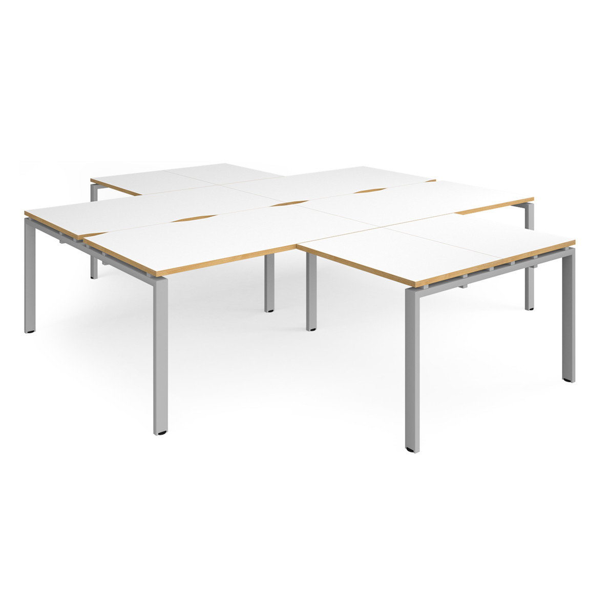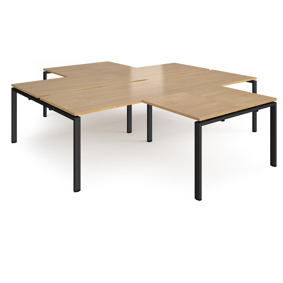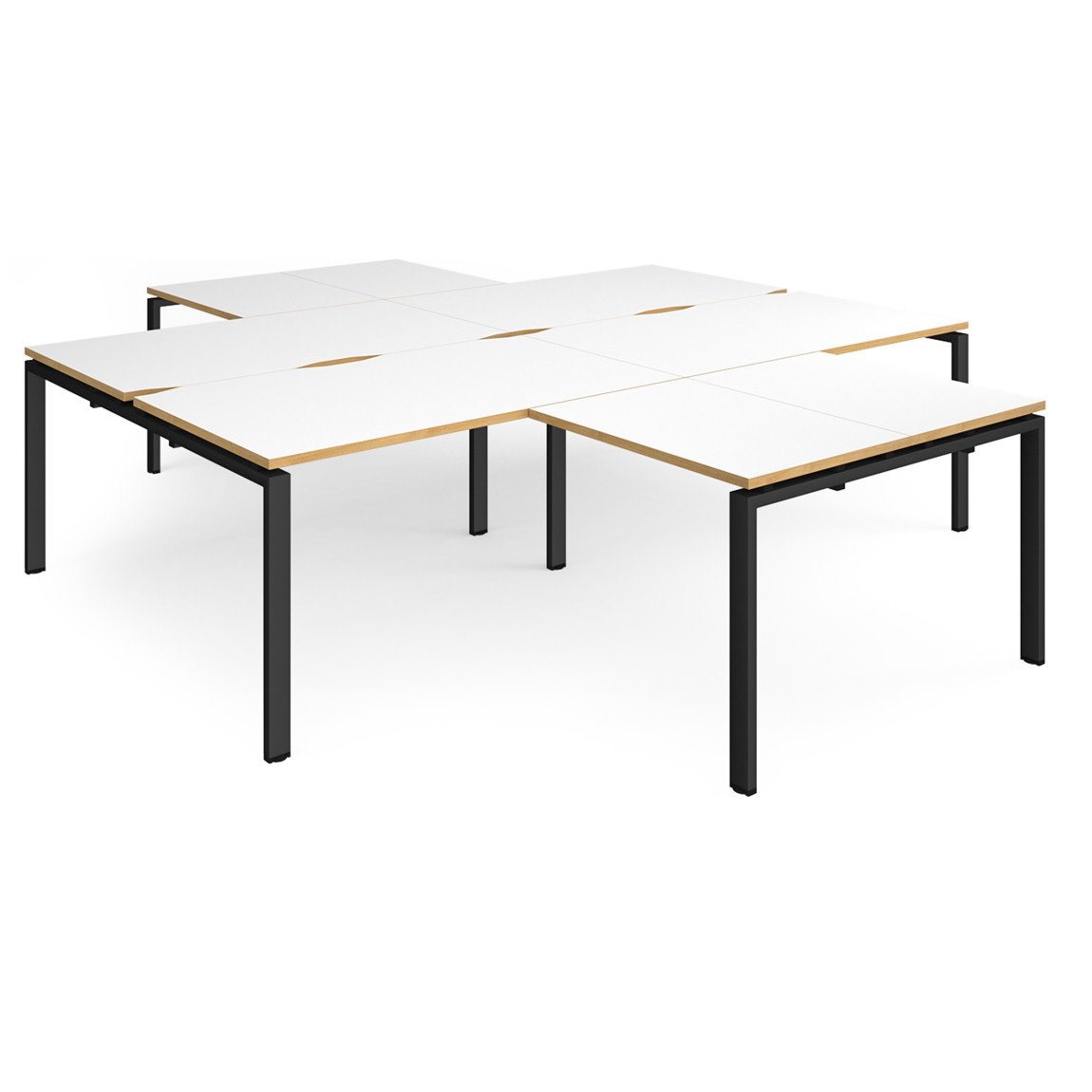 - High-quality modular bench desk clusters with two recessed centre leg supports to save space and costs.