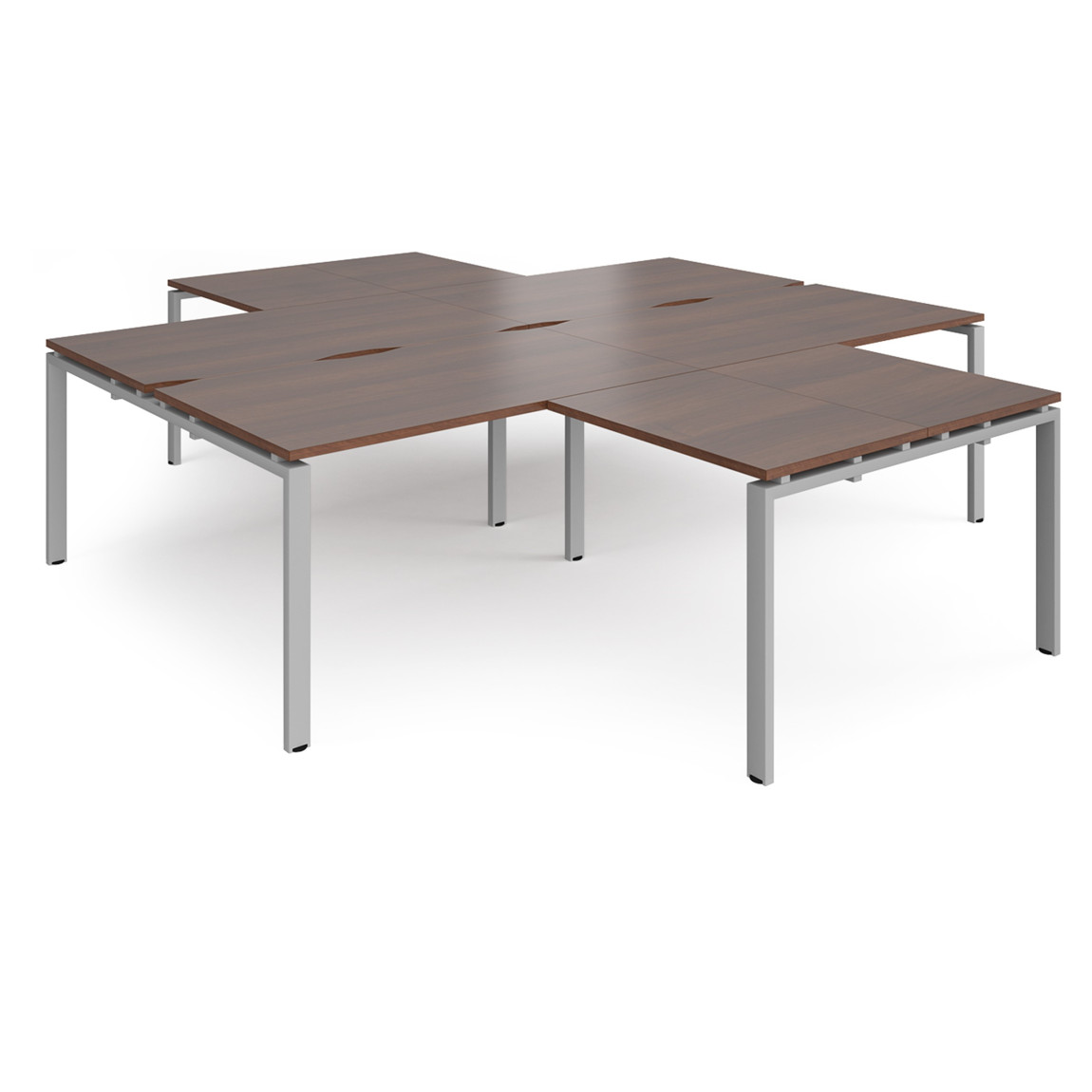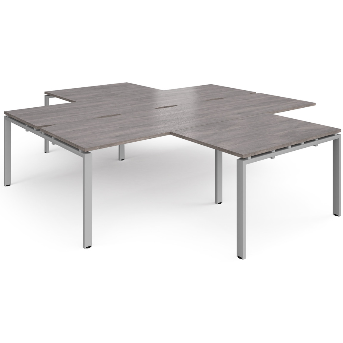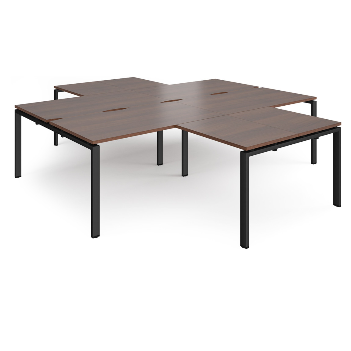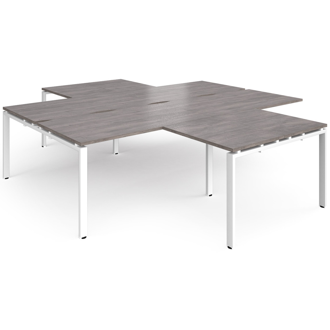 - High-quality modular bench desk clusters with two recessed centre leg supports to save space and costs.