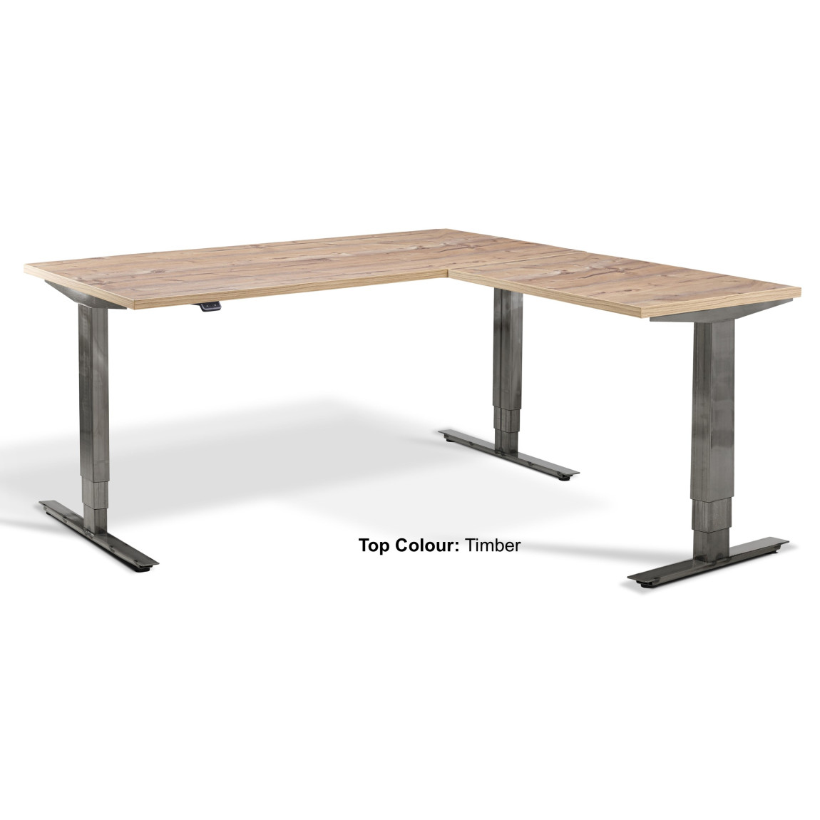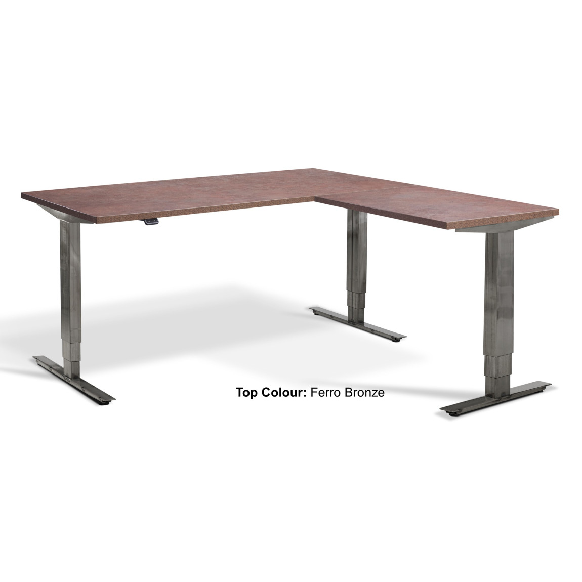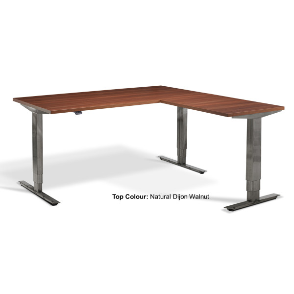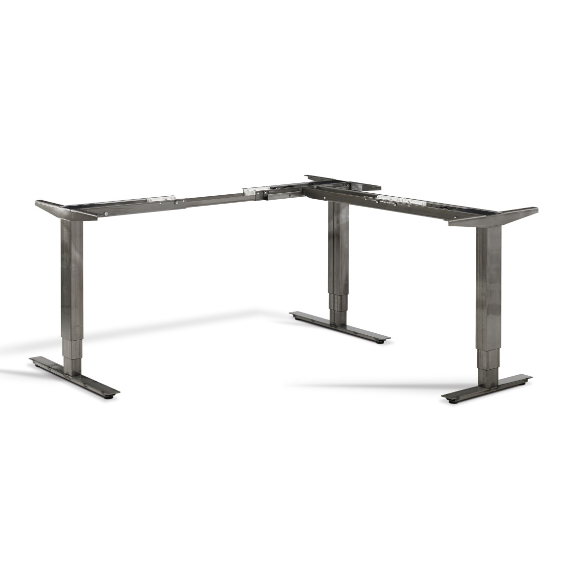 The Forge Corner desk is a triple motor version of the popular Forge desk, our vintage-industrial style raw steel frame. This is finished in a clear lacquer, leaving visible weld seams, heat marks and burnishing.