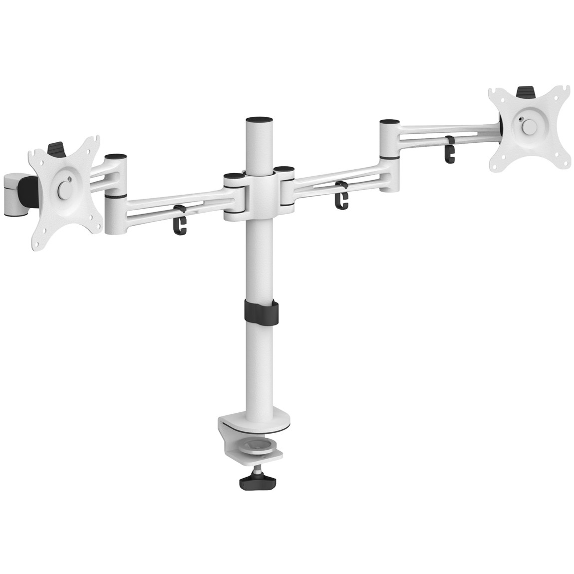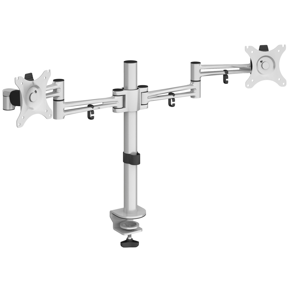 The Twin Monitor Arms are available in both Silver and White. They are pole mounted, height adjustable arms made for a twin screen. The Twin Monitor Arms offer a detachable VESA plate and have a screen weight capacity of 2 X 10kg