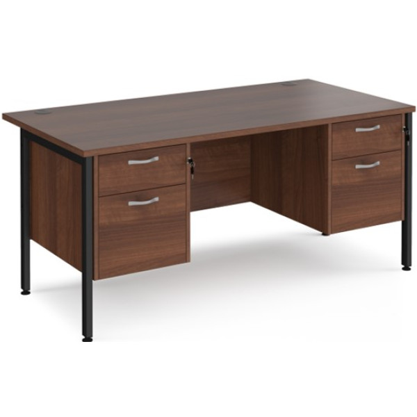 The Maestro H Frame Straight Desk is our straight office desk suitable for any office environment. The Maestro H Frame Straight Desk features two 2 drawer fixed pedestals which offer 1 shallow drawer along with 1 drawer suitable for both A4 and Foolscap Filing. It is available in a choice of 2 width options - 1600mm or 1800mm wide and offers a fully welded H frame leg design which compliments each of the 5 colours this desk is available in. The Maestro H Frame offers an 18mm back modesty panel, side modesty panels, 25mm thick tops, feet levellers, cable access ports and a heat and stain resistant MFC top.