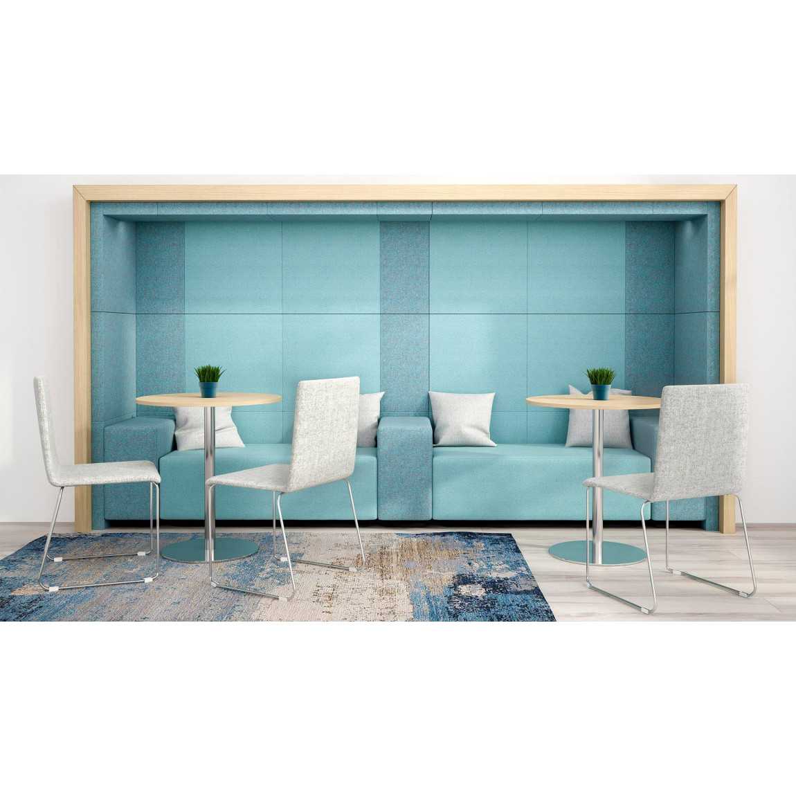 Implement your creative ideas by using acoustic panels of three different sizes and two different depths. You can also choose from our wide range of fabrics and a variety of colour options.