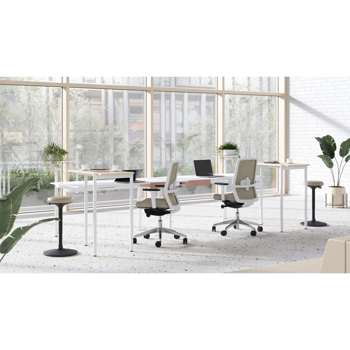 Extend your desk possibilities with a rotatable extension table that can be used for both temporary work while standing and short meetings due to its larger height.