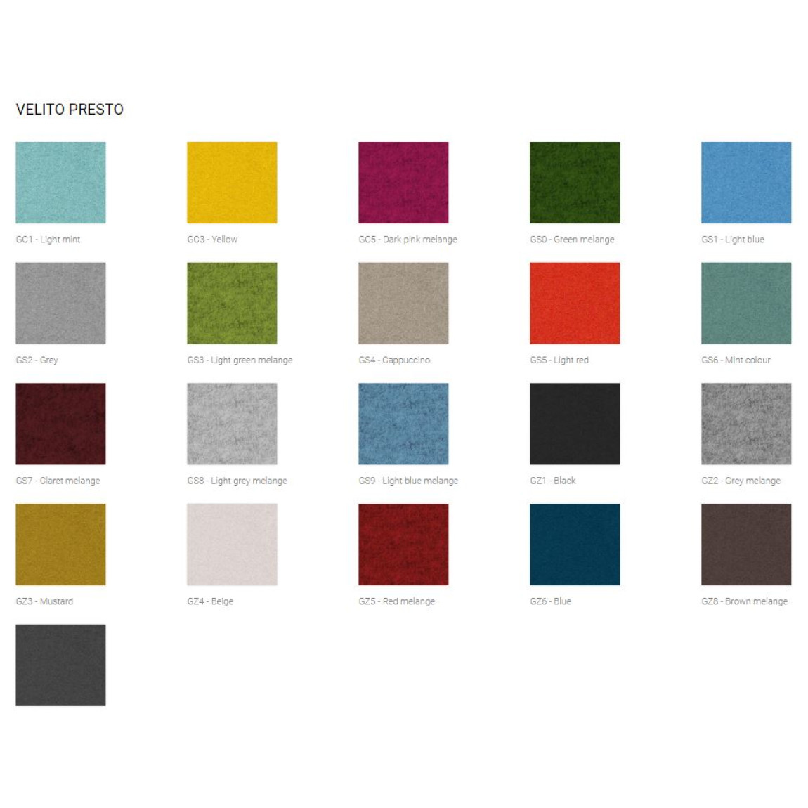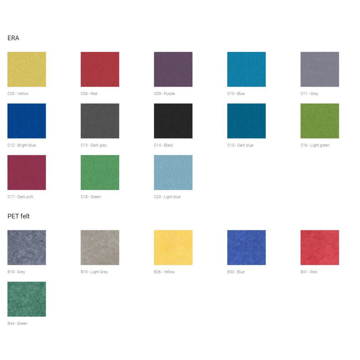 ZEDO stands out not only for its colourful metal accessories, but also for the special PET felt screen. Non-typical felt sheet bending totally hides its supporting structure, while the extended edge covers the cable tray and wires. You can enliven the screen with playful and functional accessories- a magnetic board and a shelf for small items.
