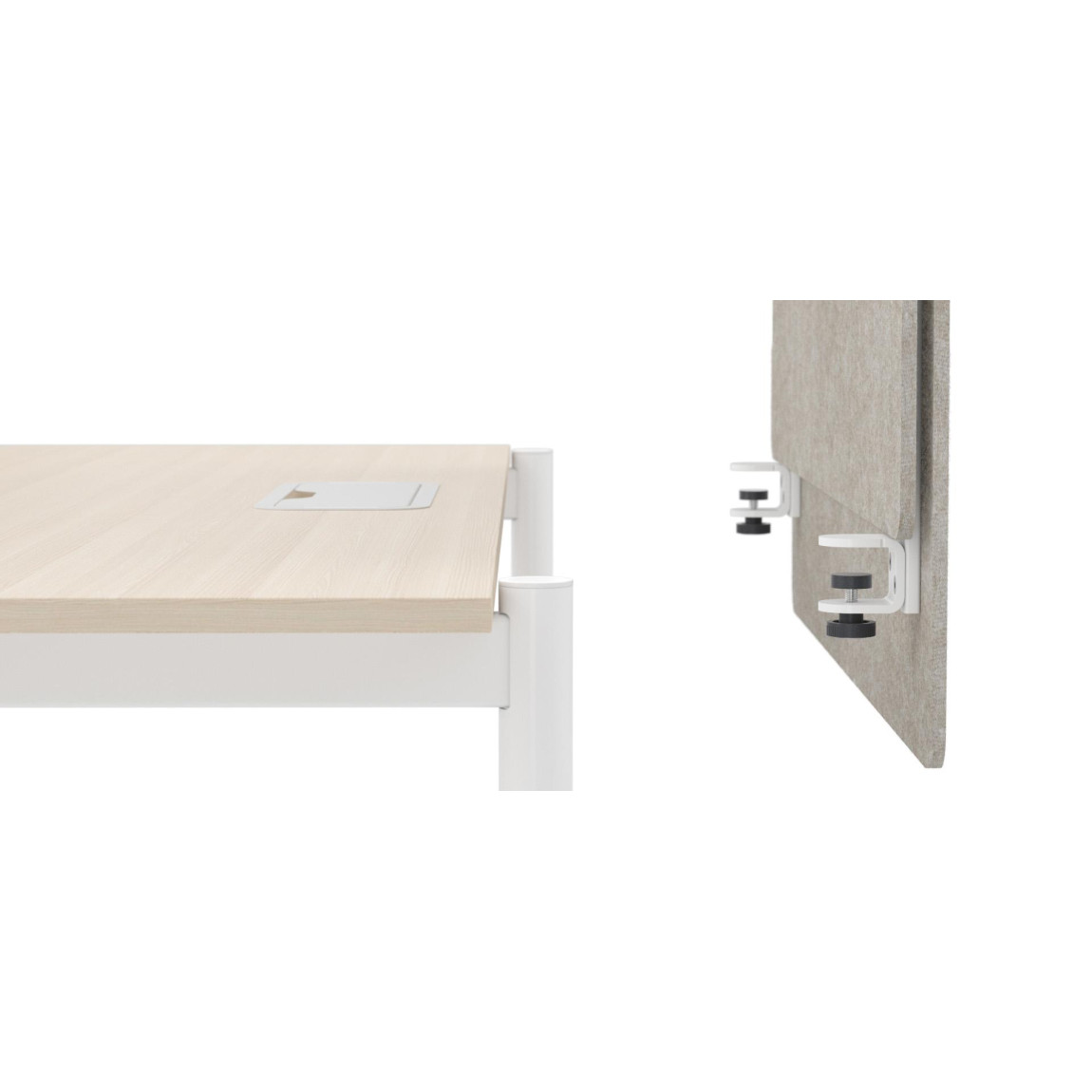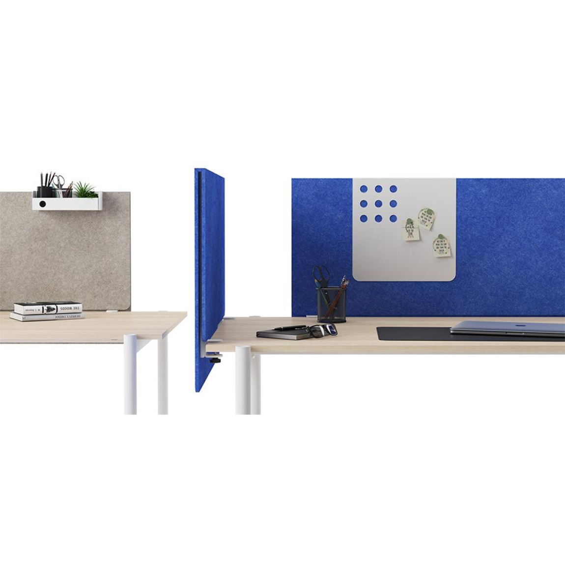 This sustainable material possesses excellent sound absorption properties. The porous structure ensures efficient absorption of medium to high frequency noise despite the low thickness of product, which is relevant when working in the office. PET felt is soft and light, yet strong and durable material is ideal for desk screens. It also has a required degree of fire resistance and meets applicable fire safety requirements. Due to the structure PET felt can be easily cleaned and disinfected.