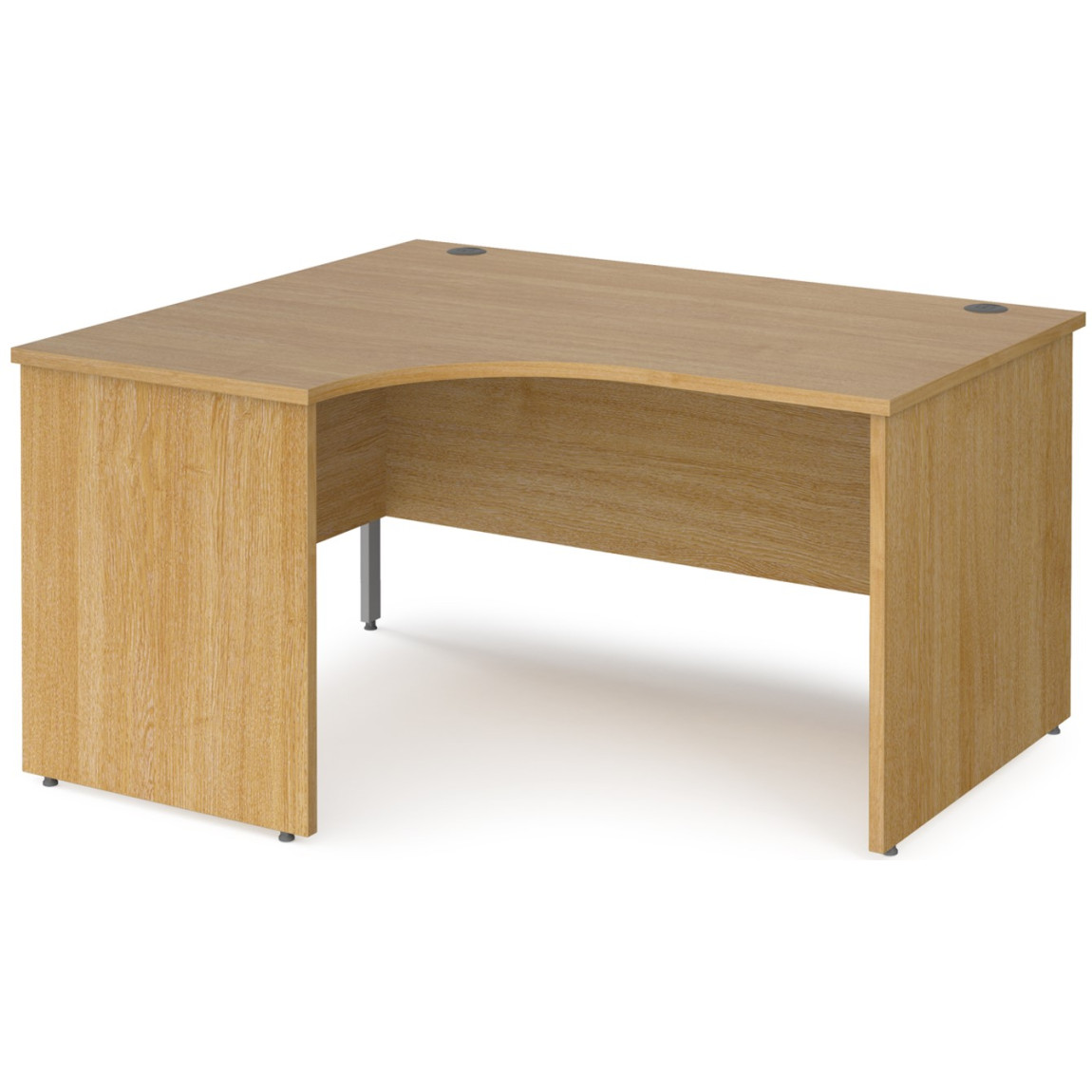 The Maestro 25 Panel End Corner Office Desk is available in a choice of 3 width options (1400mm wide to 1800mm wide), is available in both left or right hand versions and is available in 5 colour options (Beech, Grey Oak, Oak, Walnut or White) and offers a heat and stain resistant MFC top and frames, it offers 2 cable management ports in the desk top. As well as this, the Maestro 25 Panel End Corner Desk offers an 18mm thick back modesty panel, feet levellers and 25mm thick tops.