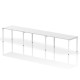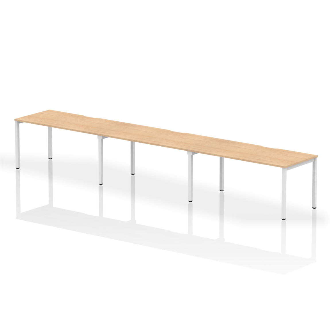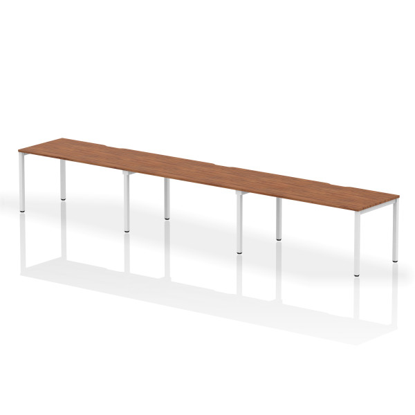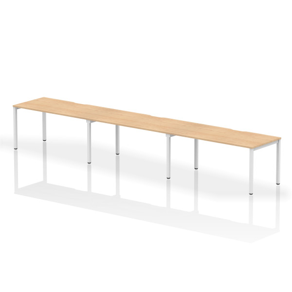 The Evolve Three Row Desk is part of the Evolve Bench Desking Range. It is available in Beech, Grey Oak, Maple, Oak, Walnut and White as well as this, the Evolve Three Row Desk is available with a choice of 2 frame colours. The Evolve Desk is available in 3 width options (3600mm, 4200mm and 4800mm), features a scalloped back, 2mm protective edging, 25mm thick tops, a powder coated frame available in either silver or white, height adjusting floor levellers and space saving column legs.