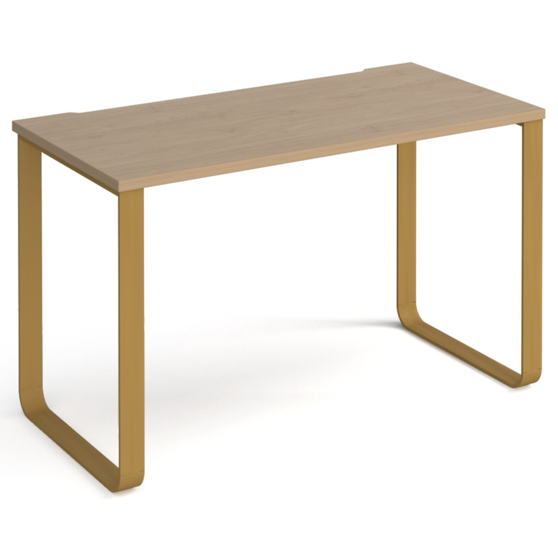 Like all the best designs, this Cairo desk with sleigh frame legs is clean, space-saving, and sure to never date. Get into creative mode when you sit at the Cairo desk crafted from the metal frame with contemporary detailing and a streamlined rectangular design with rounded edges. The sleek and smooth wooden table top in white, grey or natural oak completes the exquisite look, making this desk suitable for working, studying or browsing.