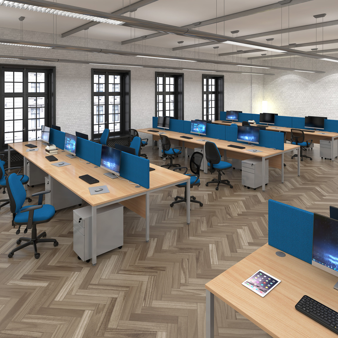 A staple for the modern office, the Maestro desking range, with its minimal, modern styling and multiple colour options is there when you need it, but doesn't demand constant attention. The traditional panel end leg design, modesty panel and 25mm melamine desktops create a fully coordinated look and offer a practical, strong presence in any office environment.