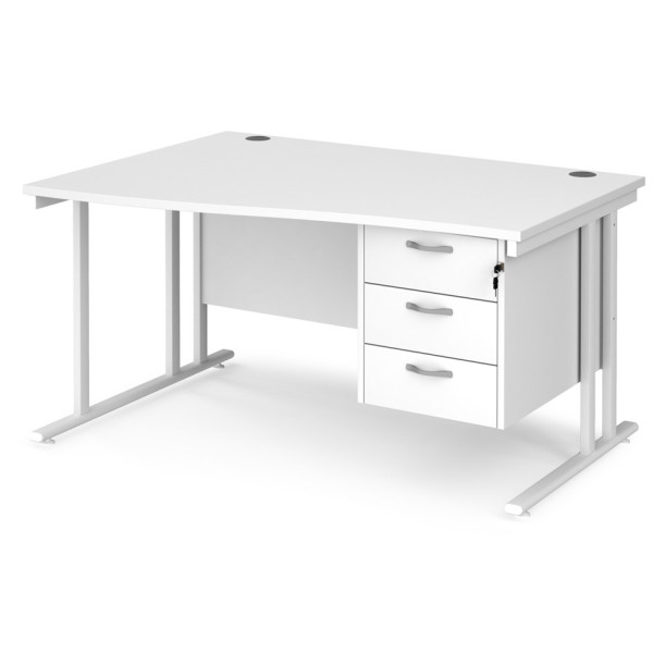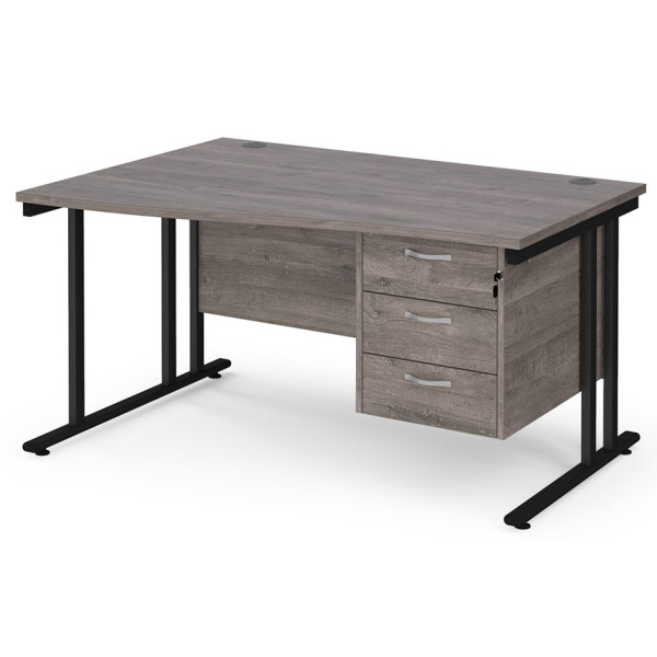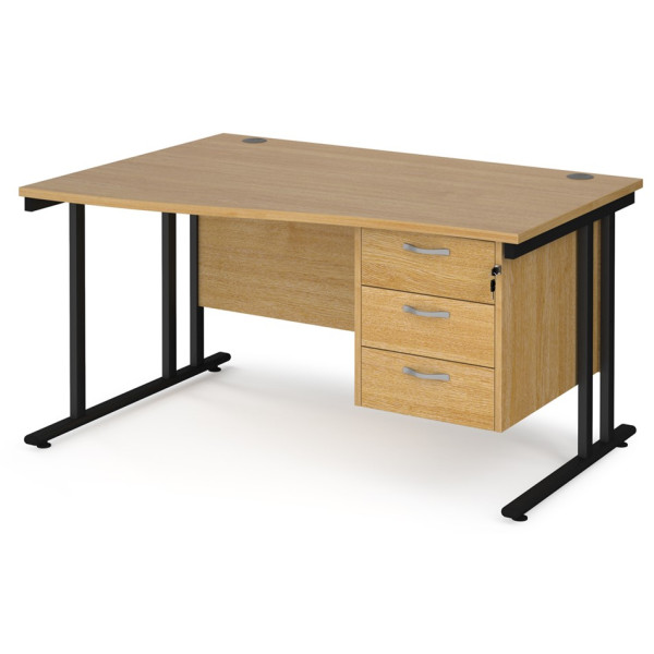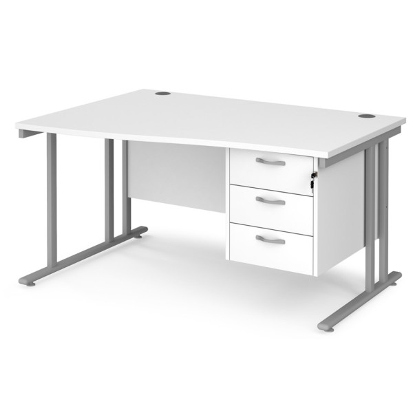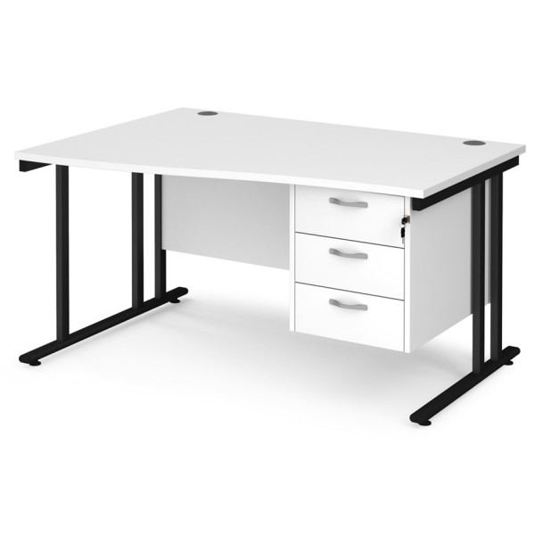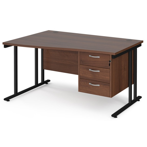 Maestro Cantilever Leg Wave Desk with Three Drawer Pedestal