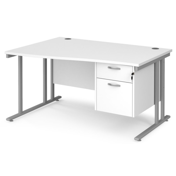 Maestro Cantilever Leg Wave Desk with Two Drawer Pedestal